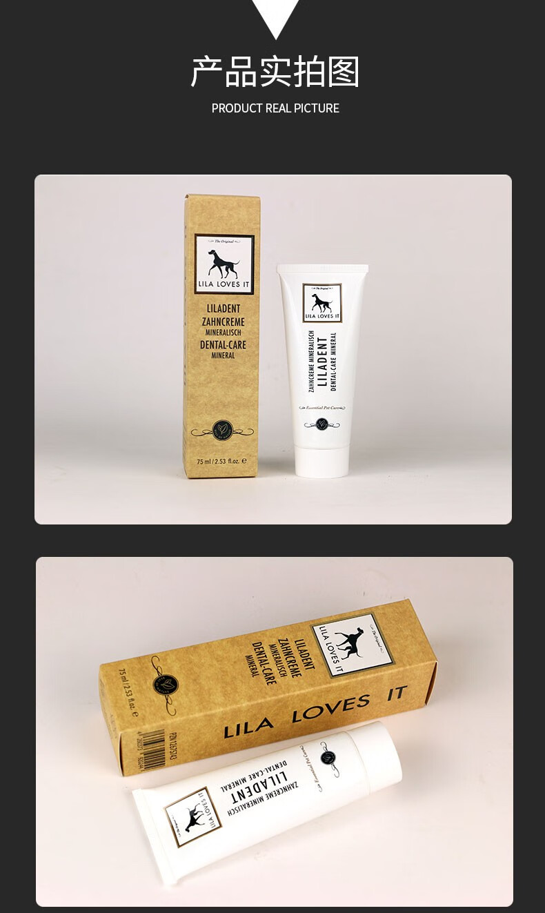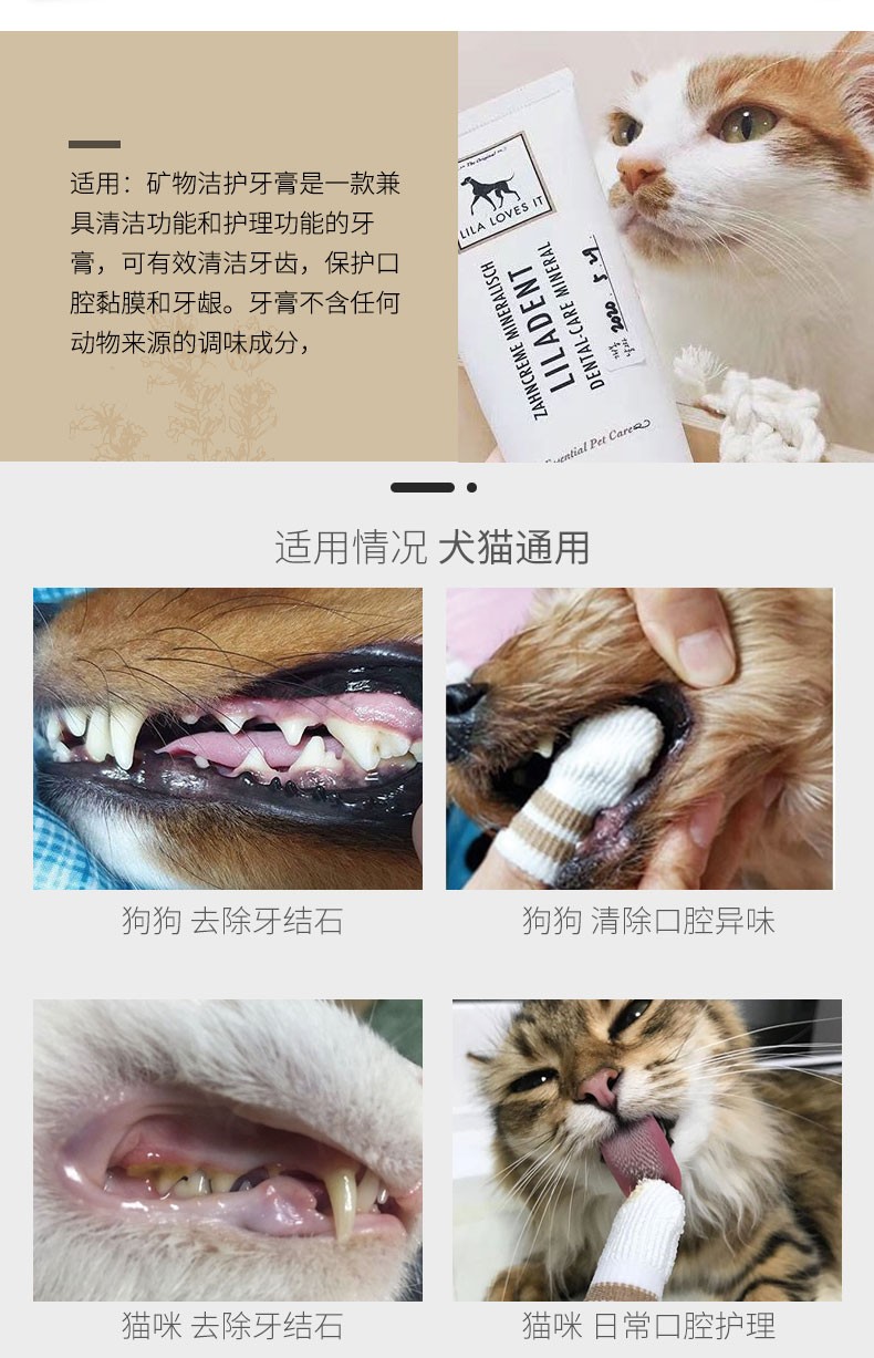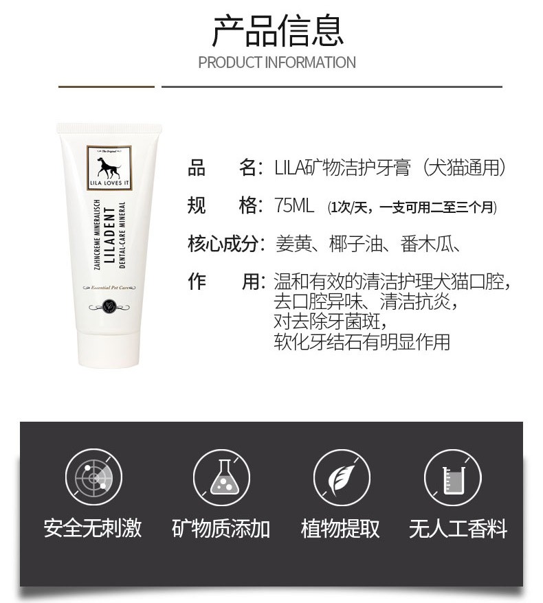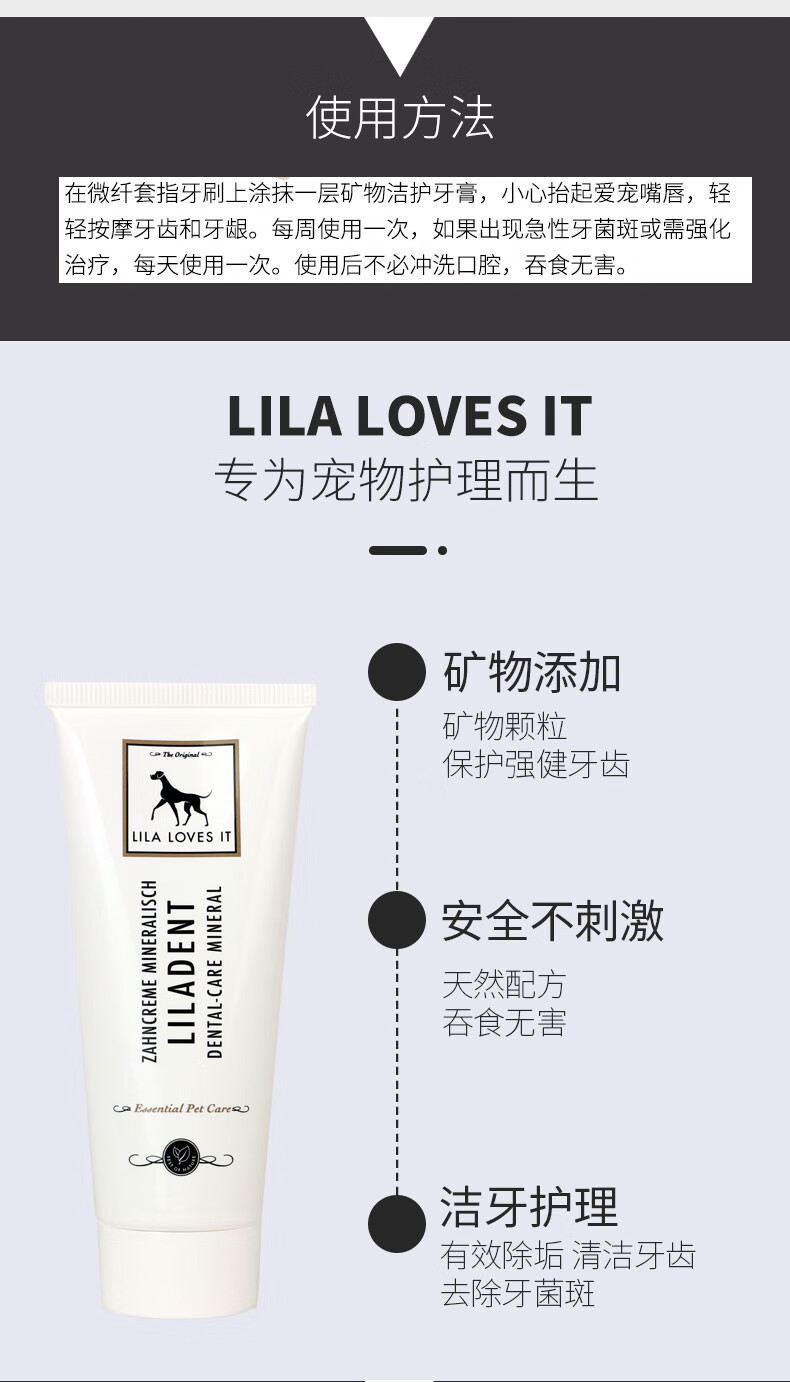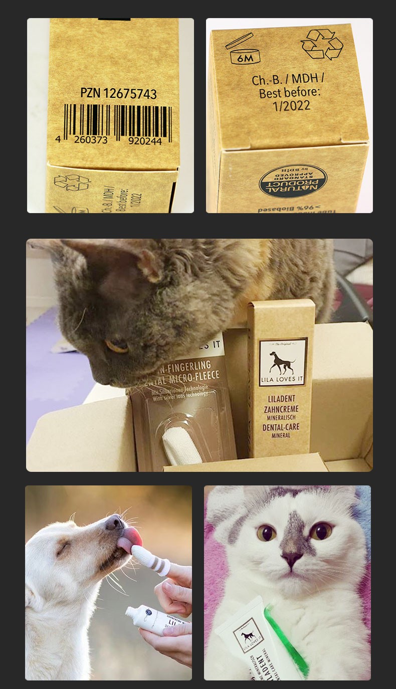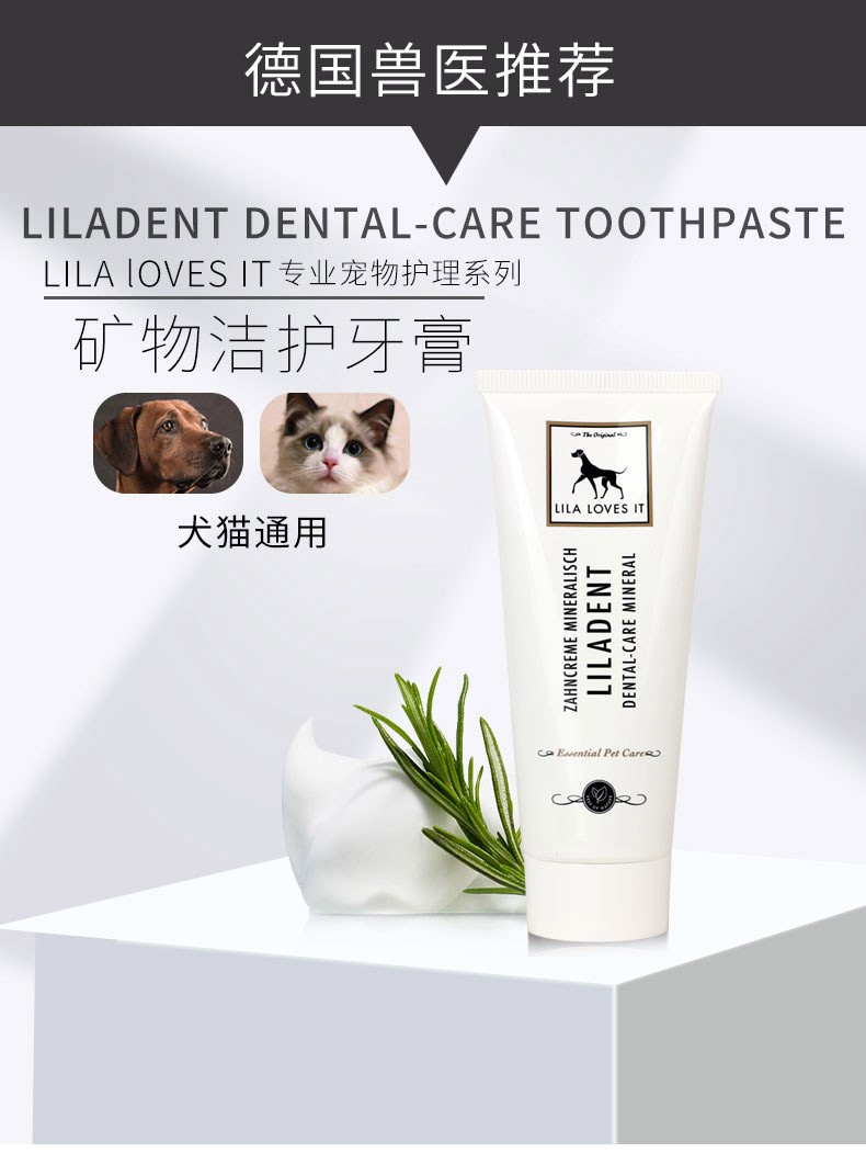 德国 里拉爱它 LILA LOVES IT 猫犬通用矿物洁护动物牙膏75ml/微纤套指牙刷