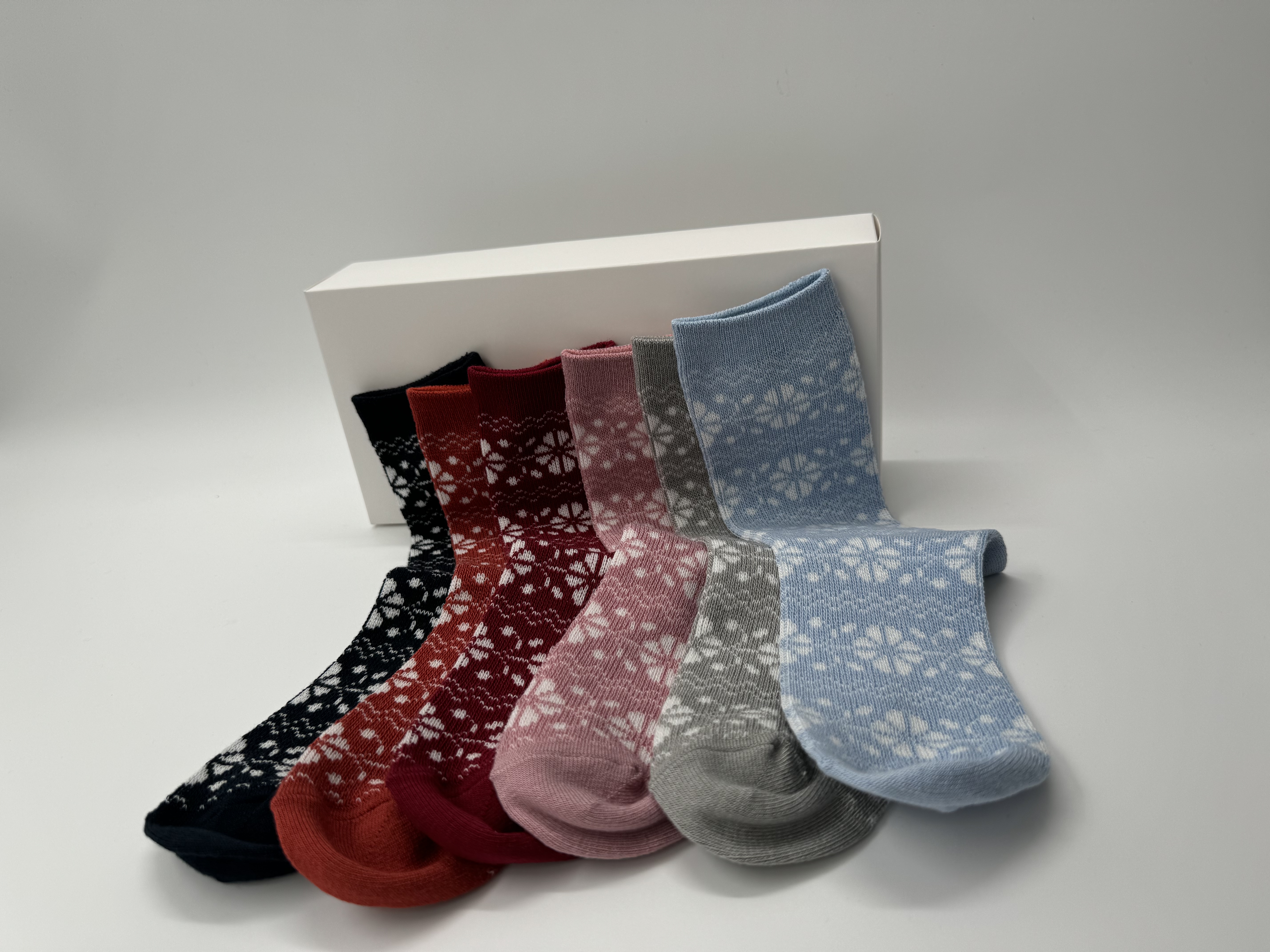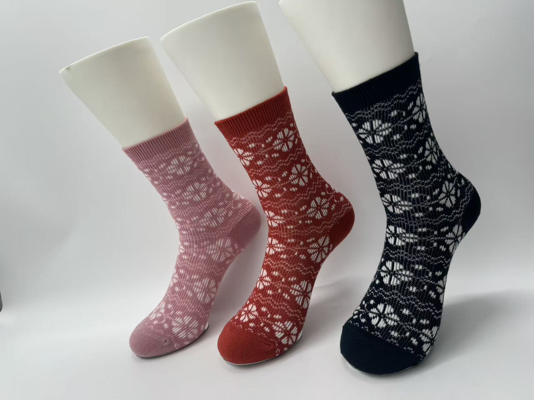 助野SUKENO 女袜秋冬保暖日系雪花纹中筒