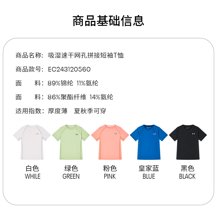 【12月-特惠福利】Under Armour安德玛儿童新款【速干】圆领短袖T恤243120560超低折扣