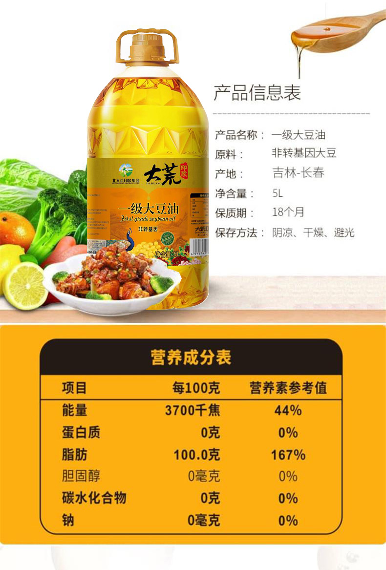 大荒印象非转基因一级大豆油5L