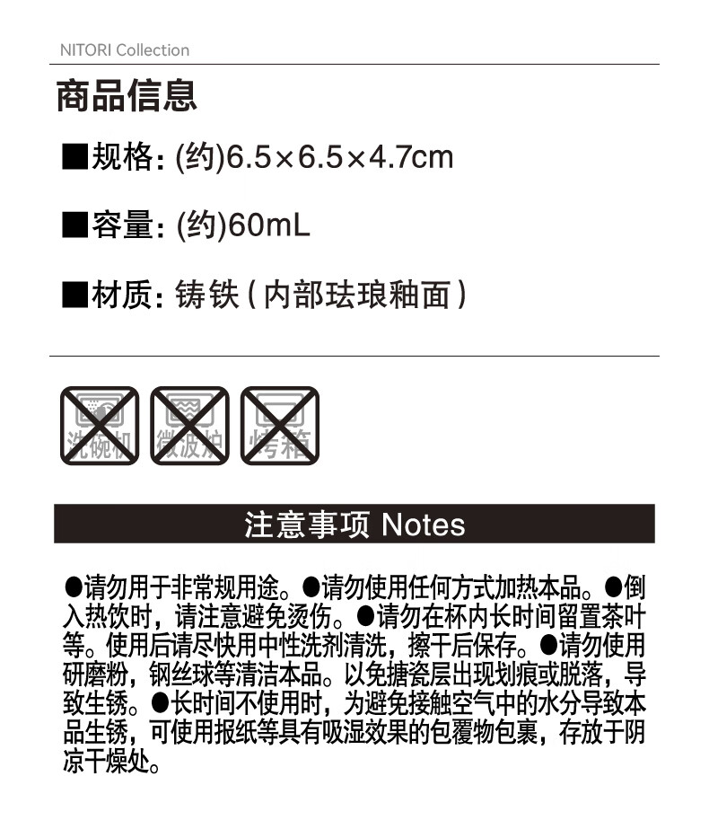 NITORI宜得利家居 铸铁杯铁杯泡茶杯子铁壶配套功夫茶杯