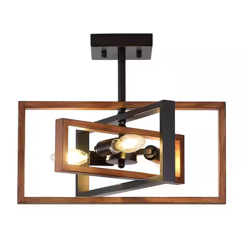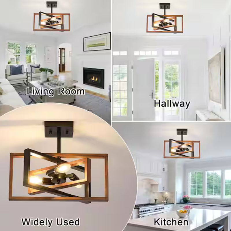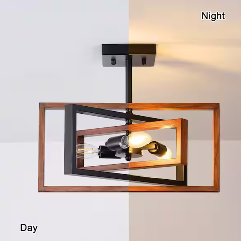 美国 美式复古吸顶灯 铁艺几何客厅灯 黑色仿木纹 3灯头(不含灯泡)