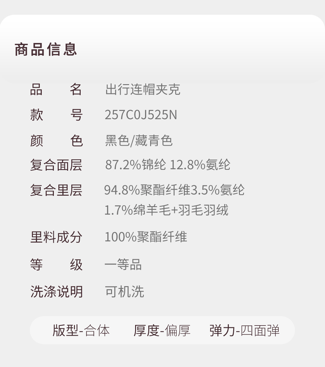 【星耀七号】羊毛羽绒复合连帽夹克外套257C0J525N