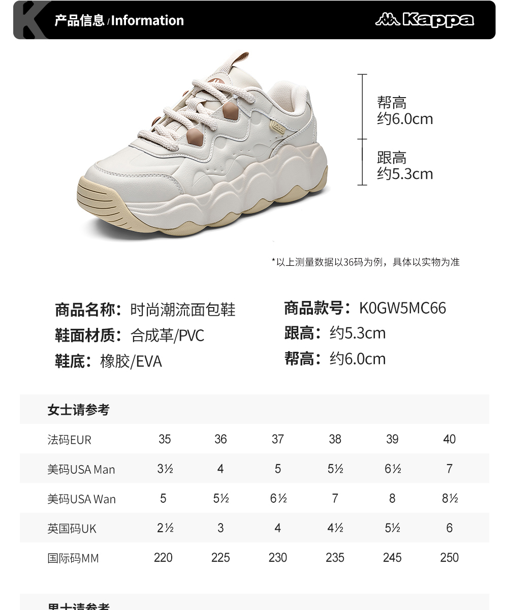 Kappa 面包鞋老爹鞋女2025新款厚底运动鞋百搭休闲鞋子K0GW5MC66