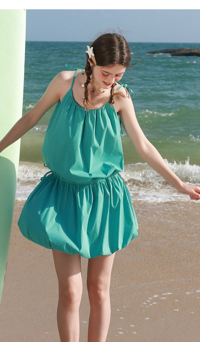 三彩独醒2026夏季新款花苞吊带裙连衣裙A字裙短裙沙滩度假F