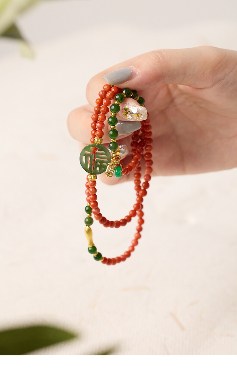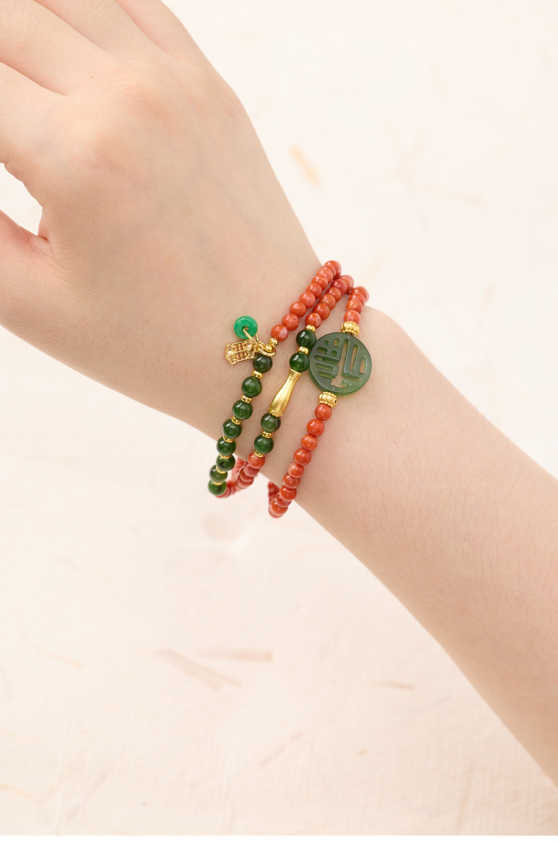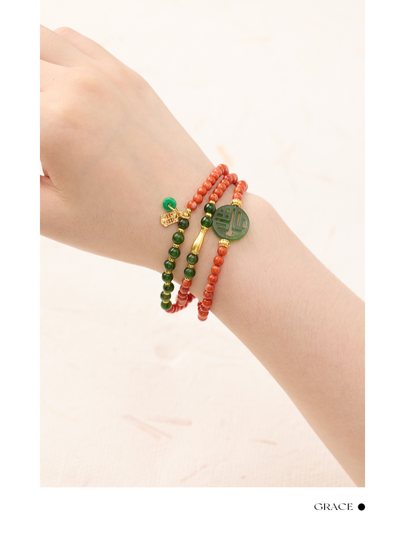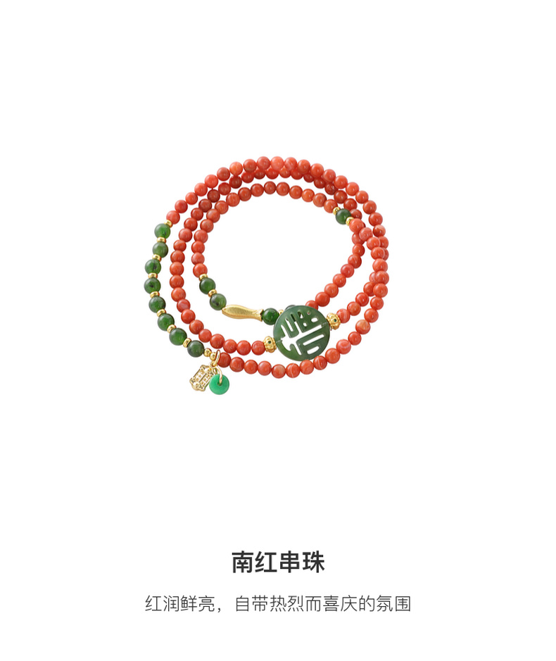 【东方系列】三彩2025新款国风碧玉福牌南红串珠多层手串叠戴女