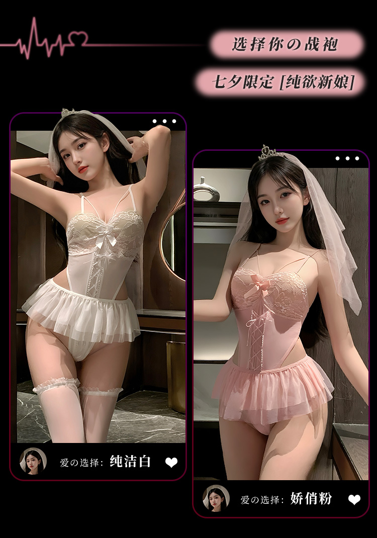 【情趣内衣】霏慕 蕾丝覆胸纯欲新娘套装6606