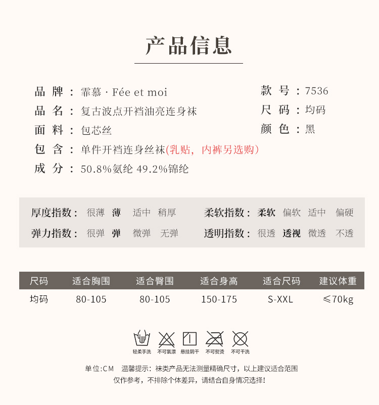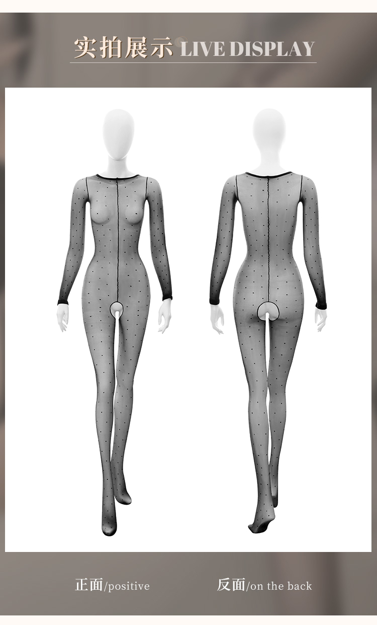 【情趣内衣】霏慕 复古波点开裆油亮连身袜7536