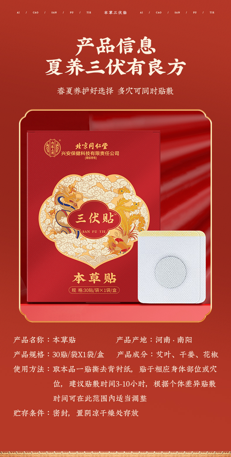 北京同仁堂三伏贴 艾草贴艾灸贴发热贴夏季三伏穴位贴