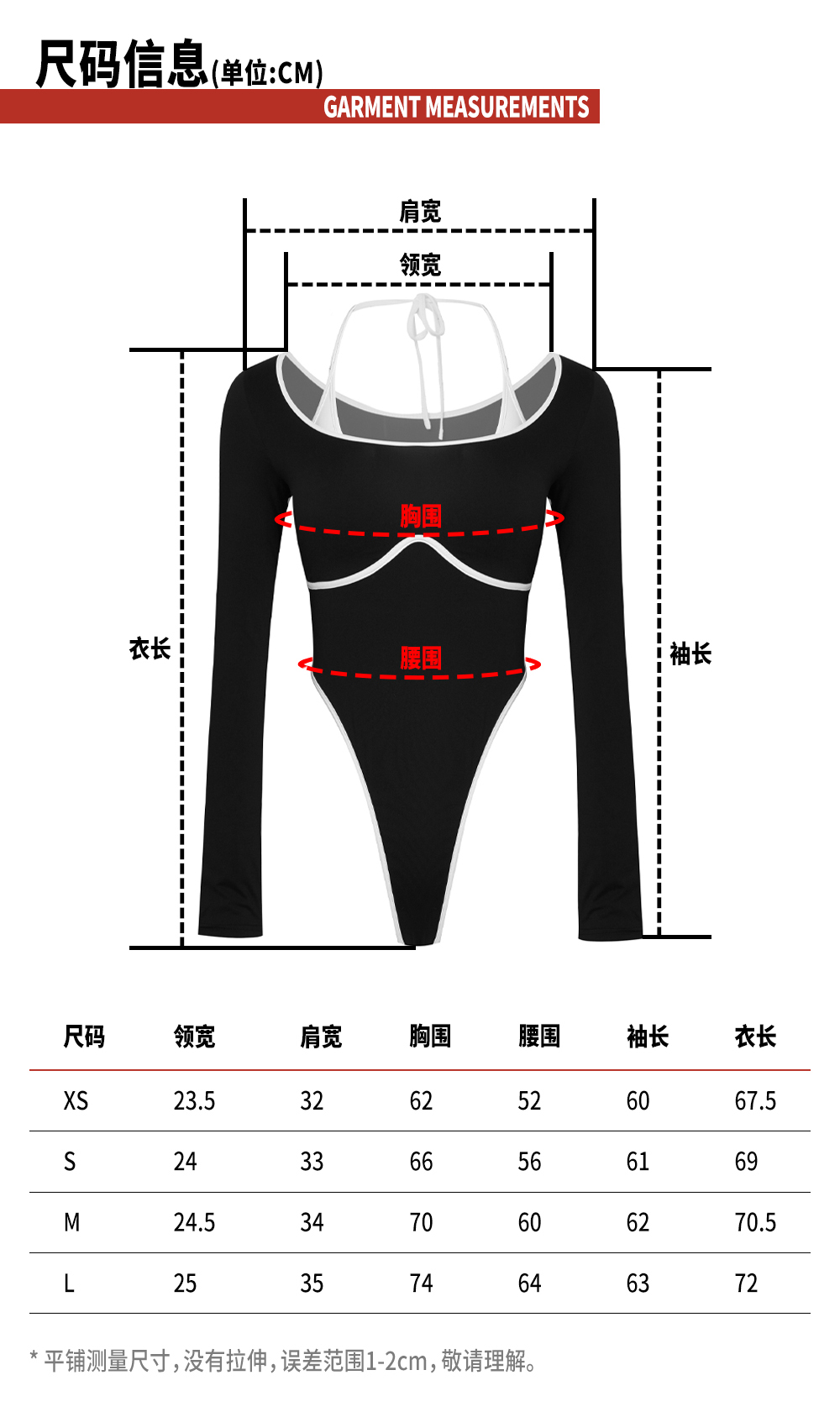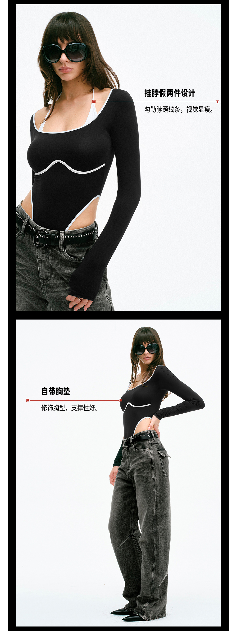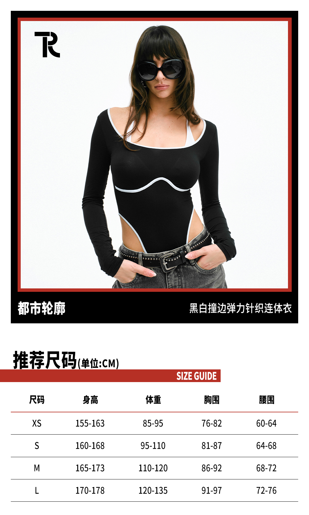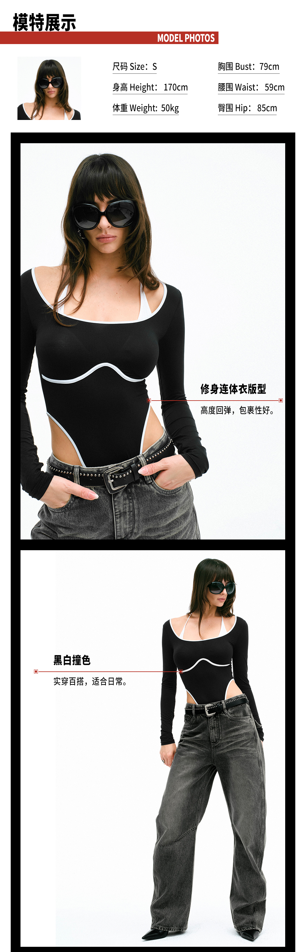 TR她热 都市轮廓 黑白弹力带胸垫设计感修身显瘦百搭连体衣上衣