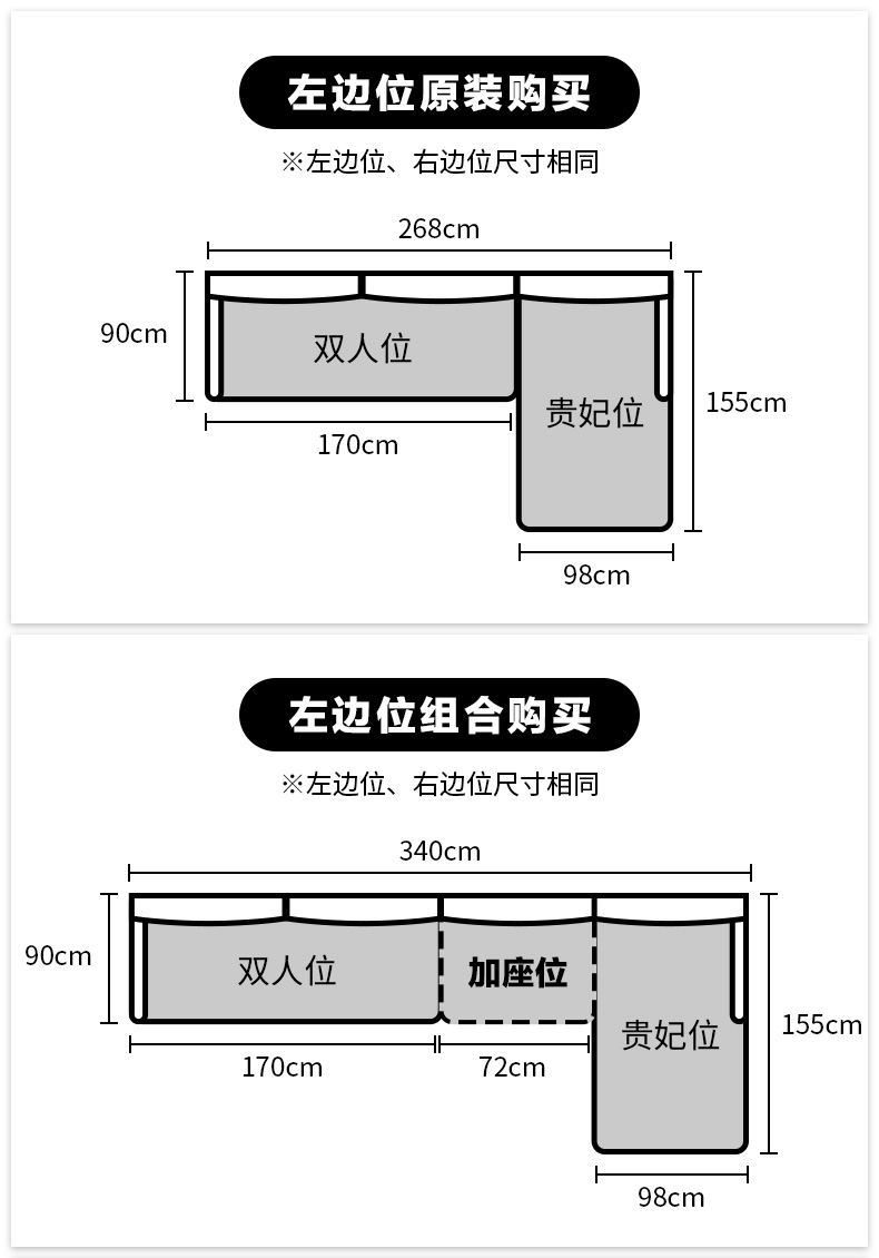 【家具】新L型沙发 左边位 新德里 EM0544(不含中间位)深棕色/米色/红色/黑色/中棕色