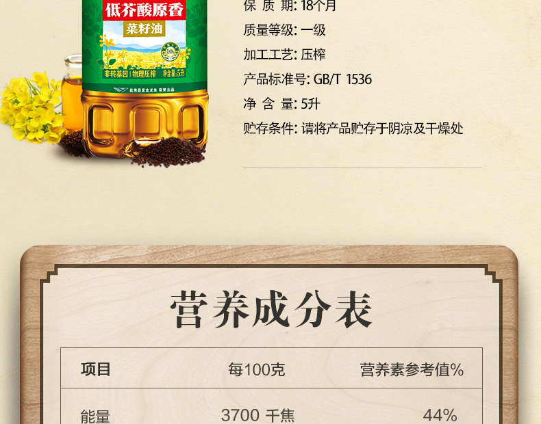 金龙鱼低芥酸原香菜籽油5L—rxs
