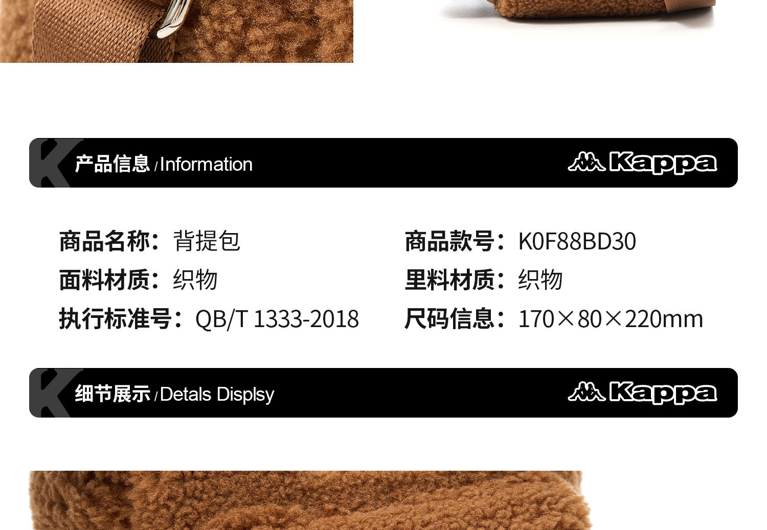 Kappa 羊羔绒书包女2025新款秋冬季迷你单肩背包斜挎包K0F88BD30