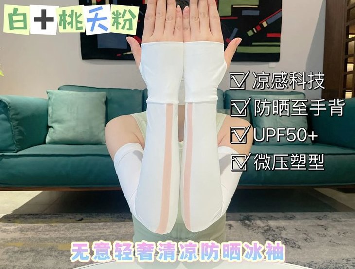 11.凉感防晒UPF50+轻奢防晒冰袖(白+桃夭粉、碧落蓝+苍葭绿)