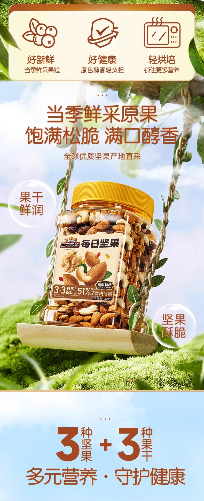 【乐刻甄选】三只松鼠每日坚果罐装混合果仁零食400g*2罐