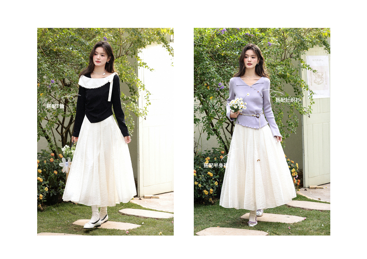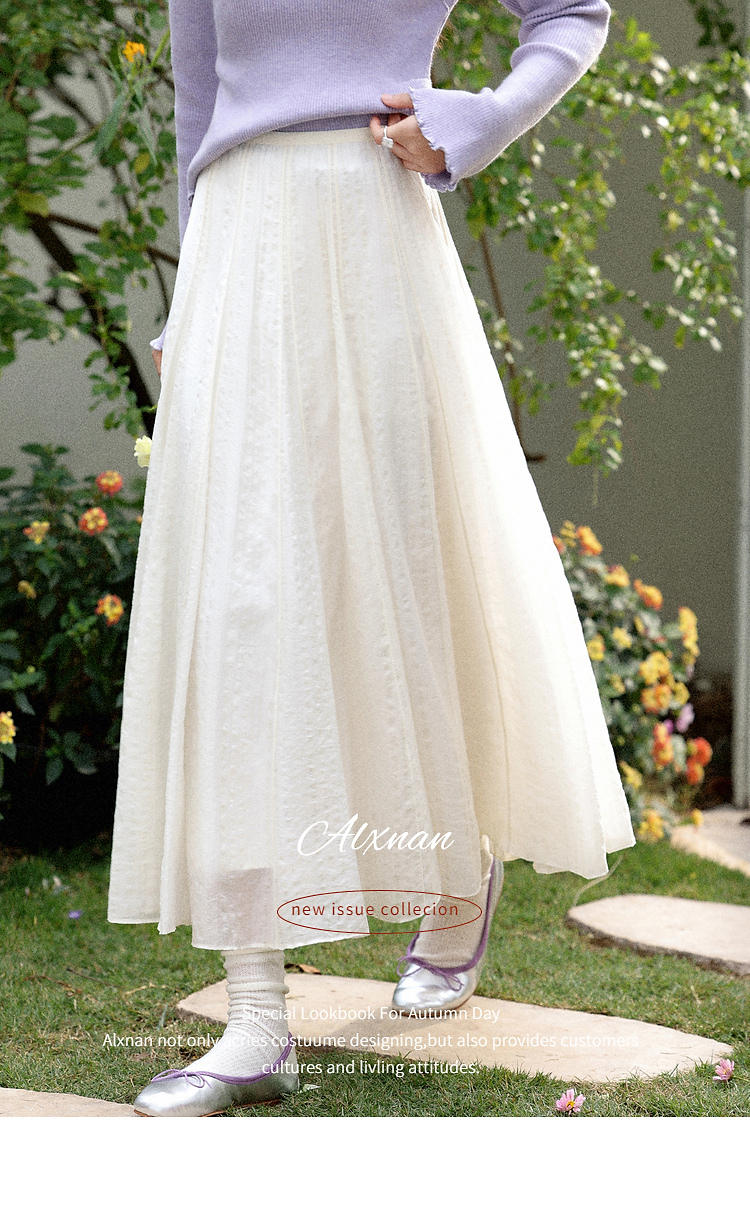 鹿向南「春日絮核」设计感白色半身裙女春季新款高腰显瘦长款裙子