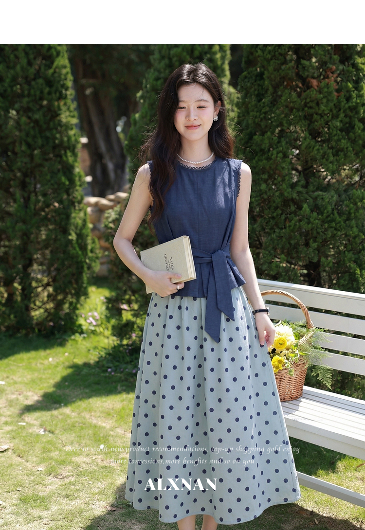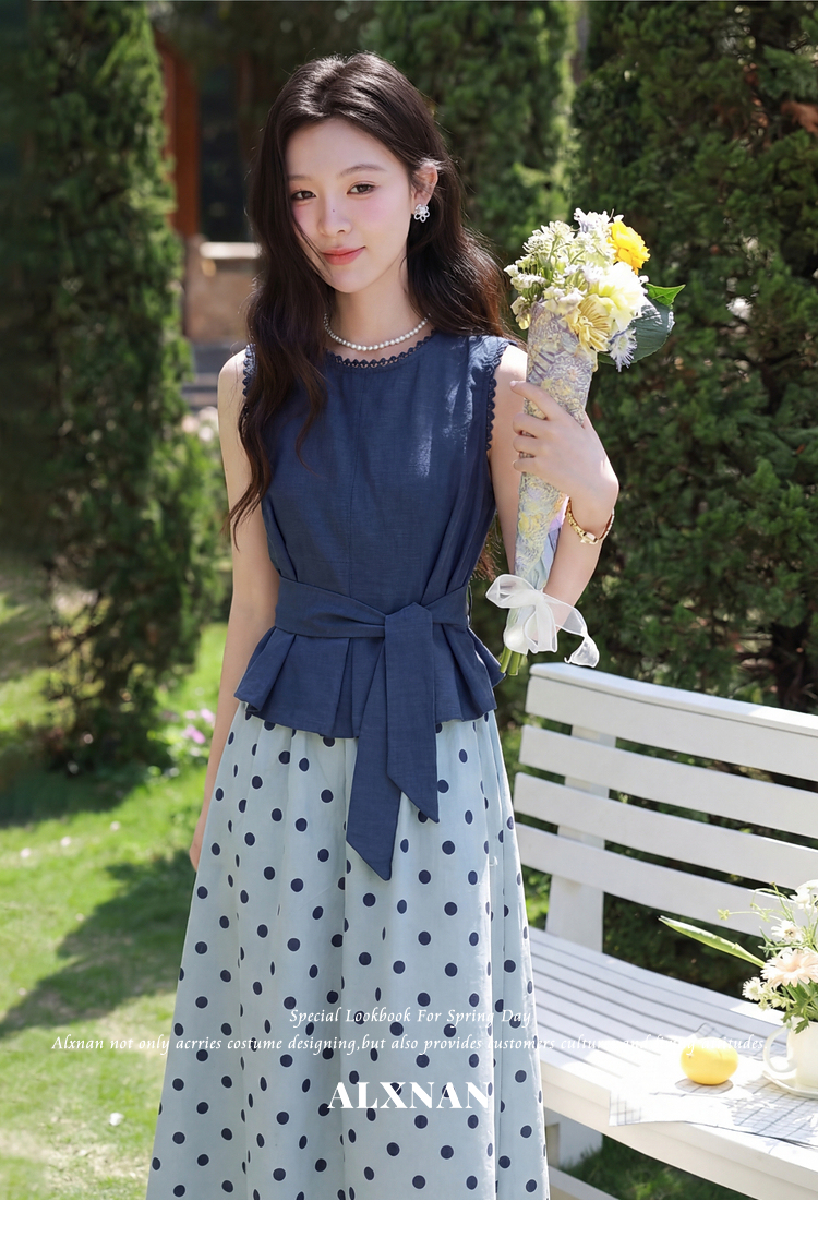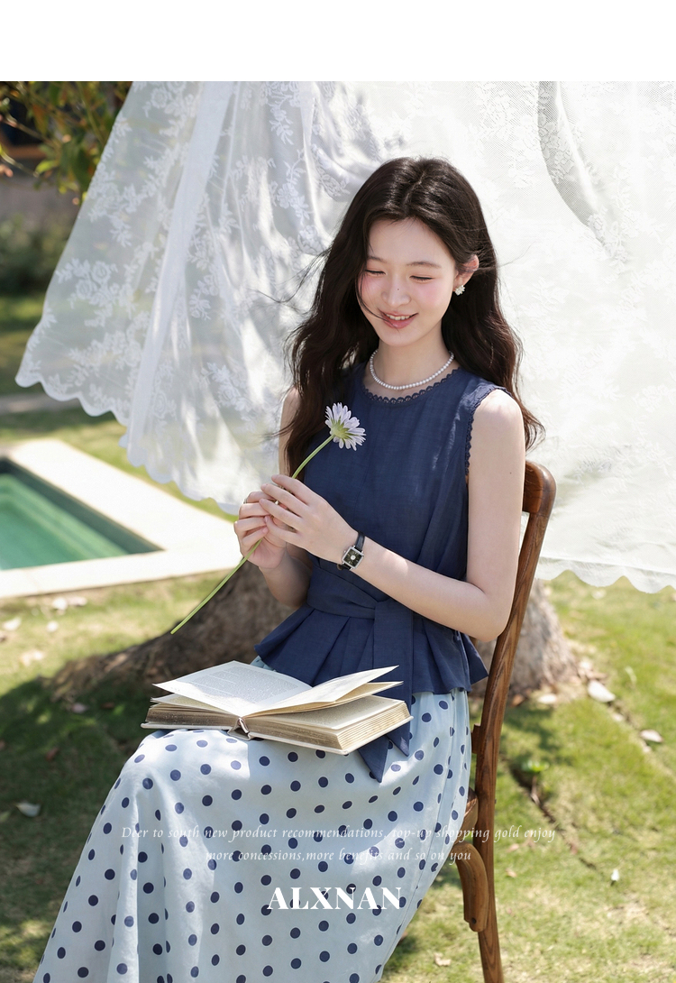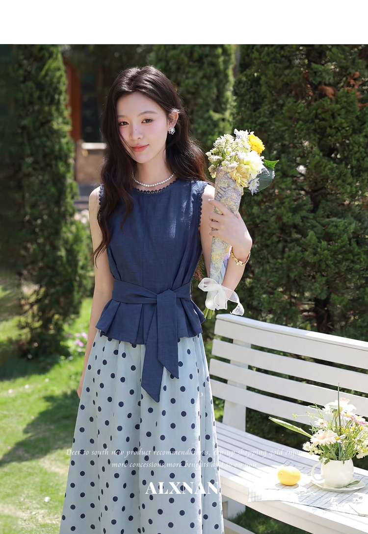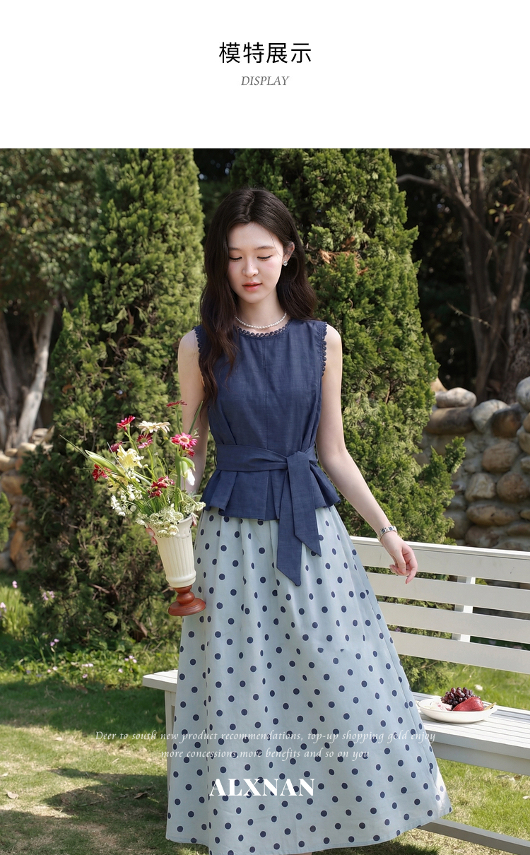 鹿向南【0410/20:00新品前1小时5折限量100件】蓝色背心裙子套装