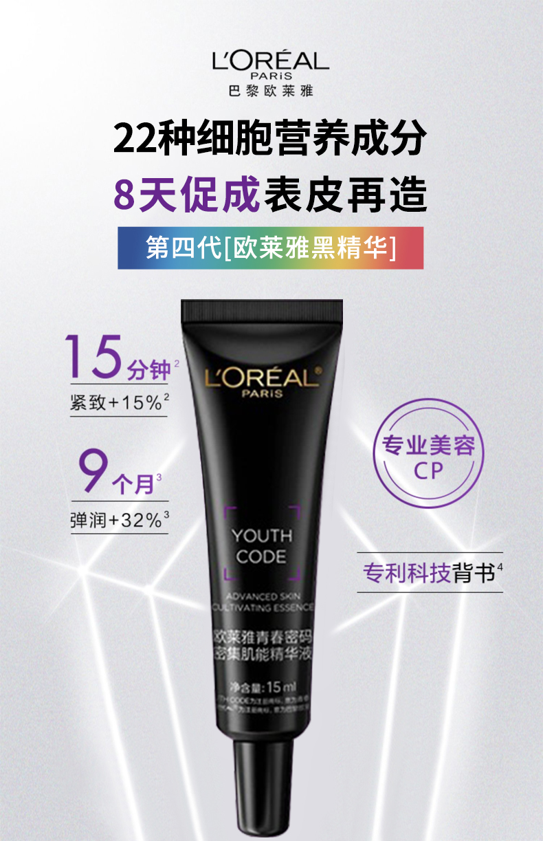 鹿鹿严选·【欧莱雅黑精华4.0】欧莱雅新升级四代黑精华紧致抗初老面部精华15ml*4