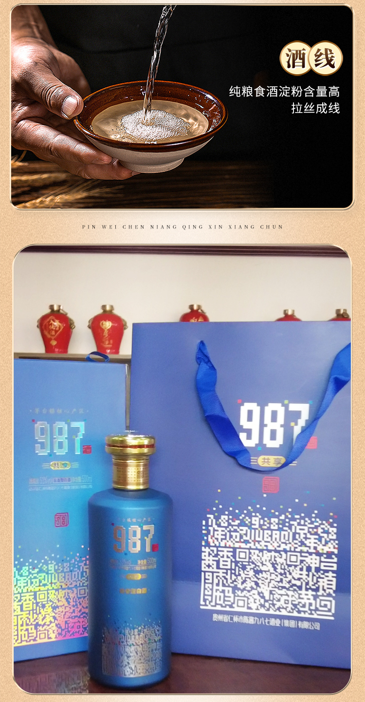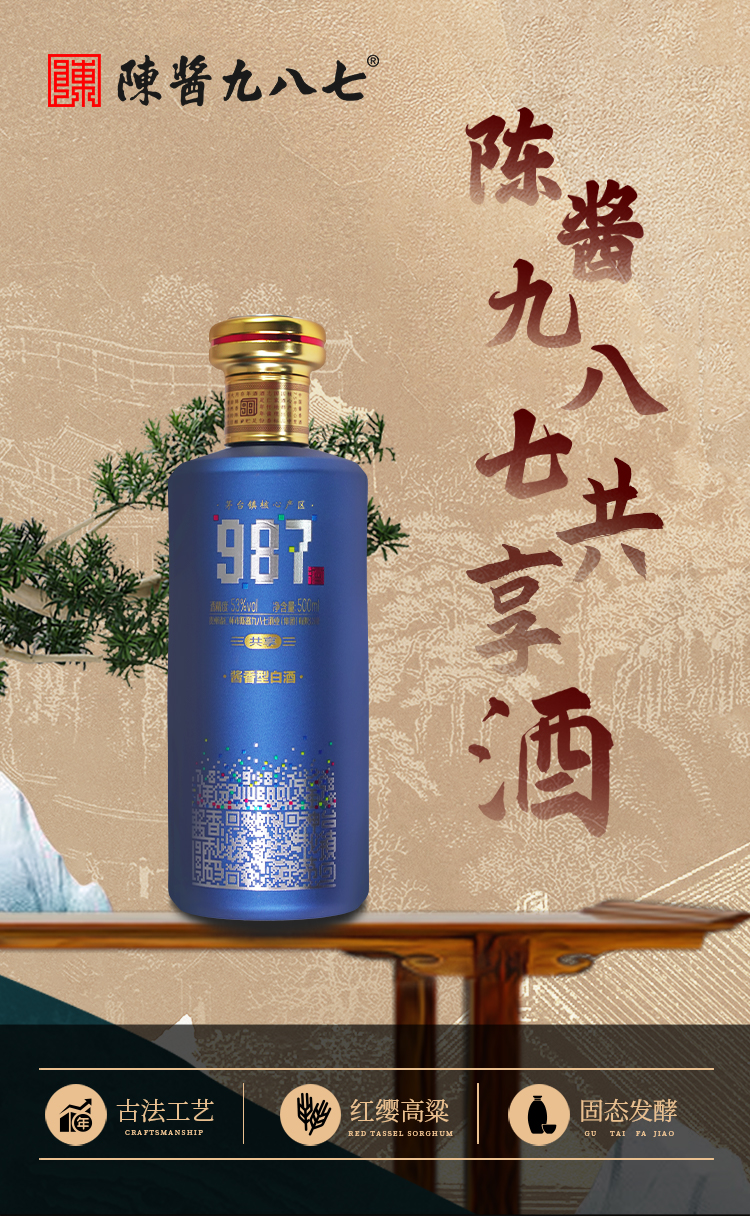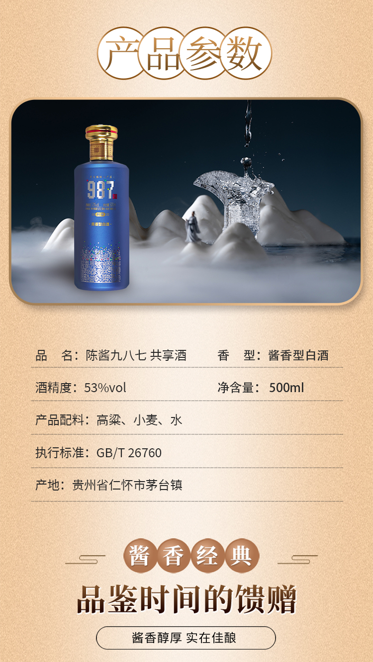 【陈酱九八七】共享酒 酱香型白酒 · 酒体线净透明 · 无悬浮沉淀 · 酒香醇厚 实在佳酿