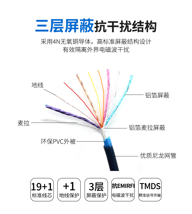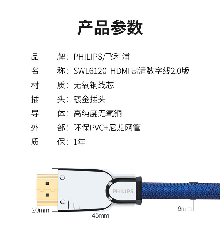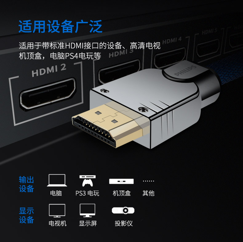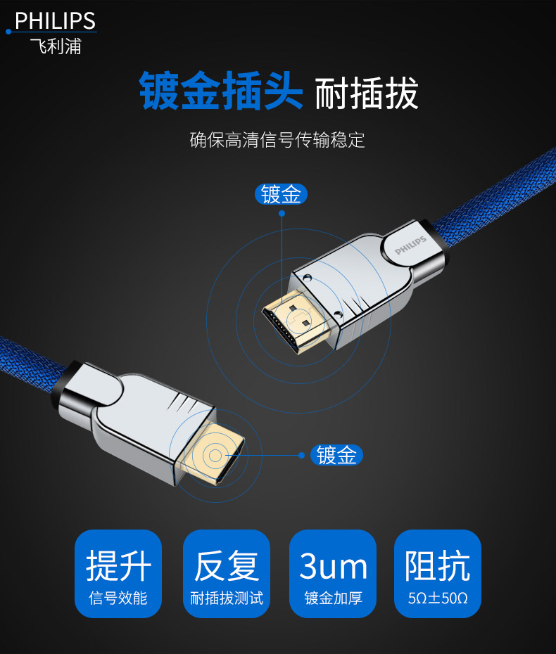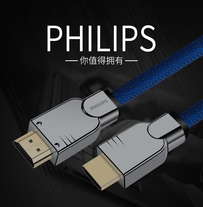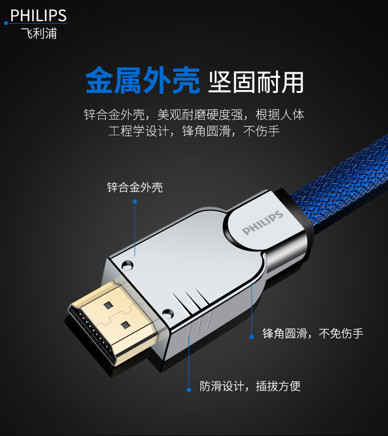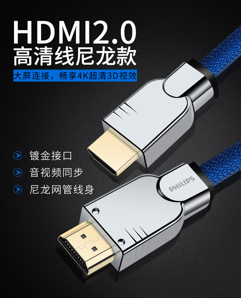 PHILIPS 飞利浦 SWL6120K/93 HDMI线2.0版锌合金 4K 尼龙网管高清线 镀金插头