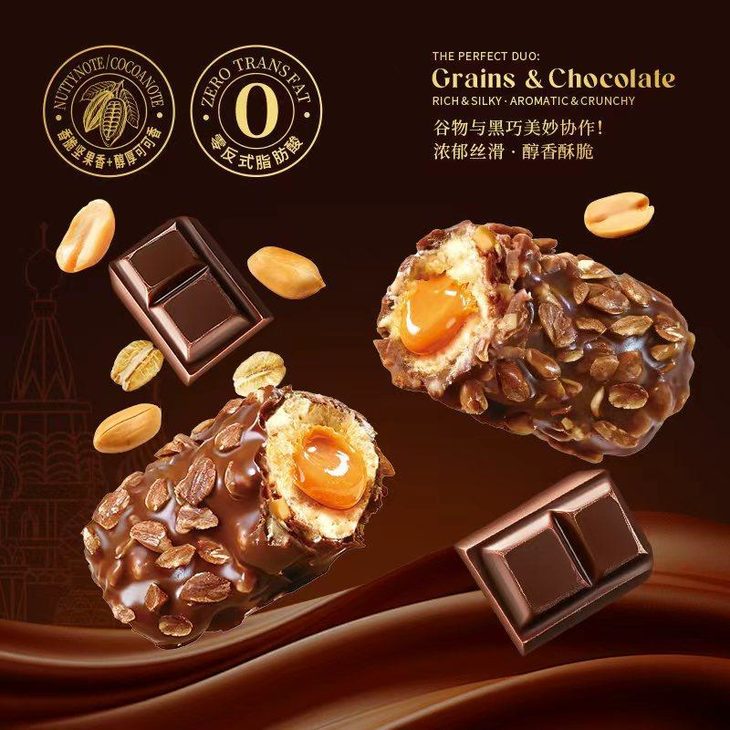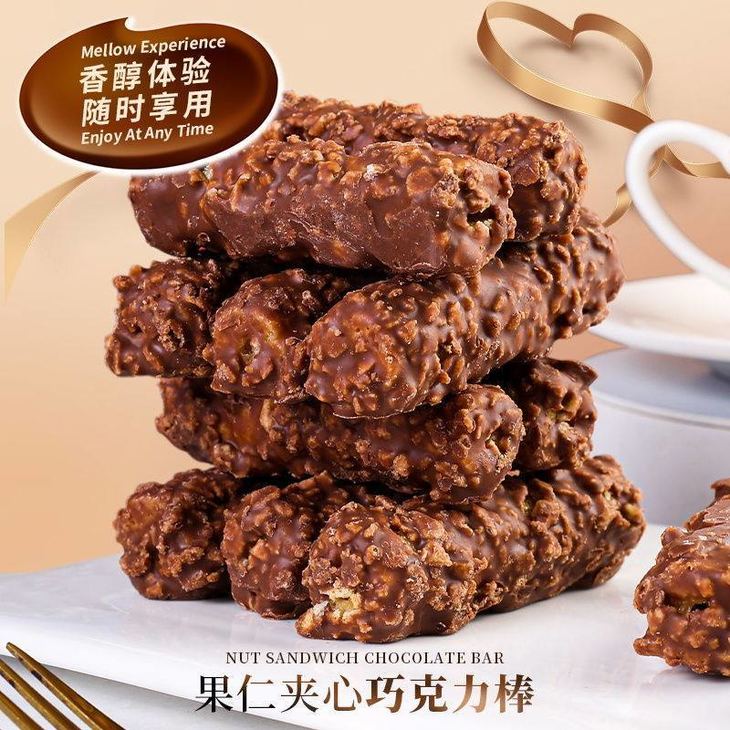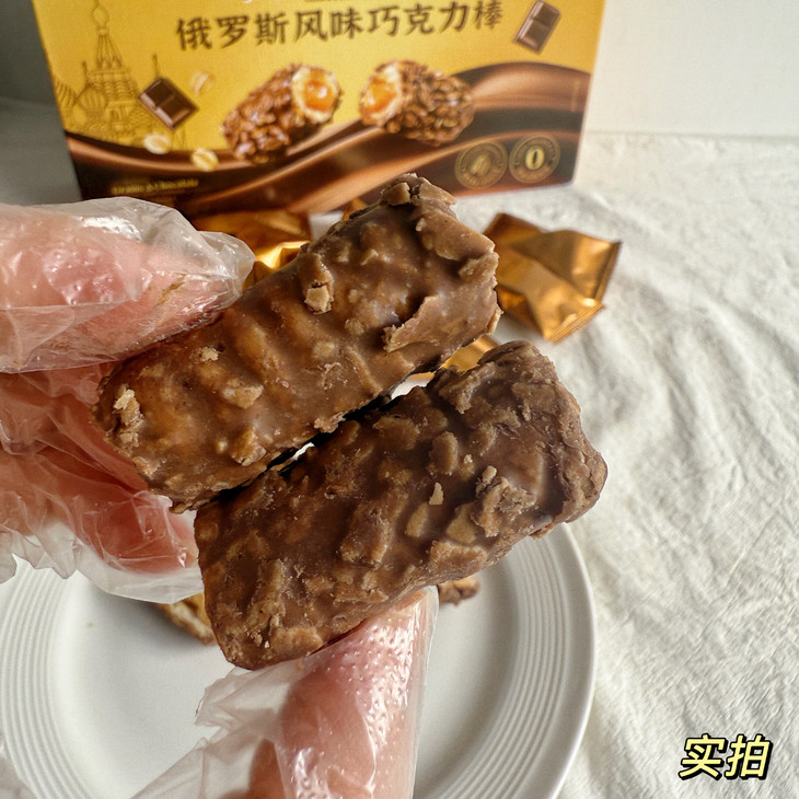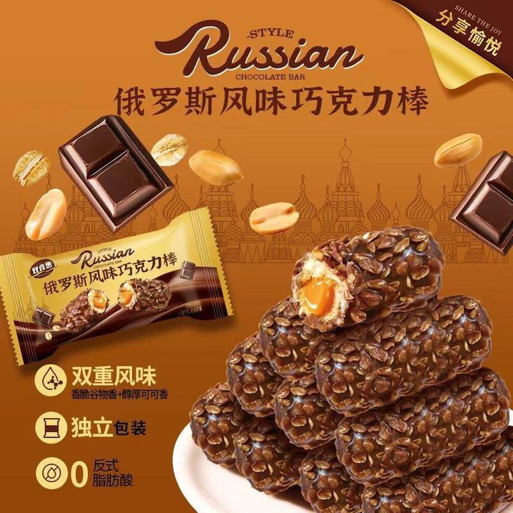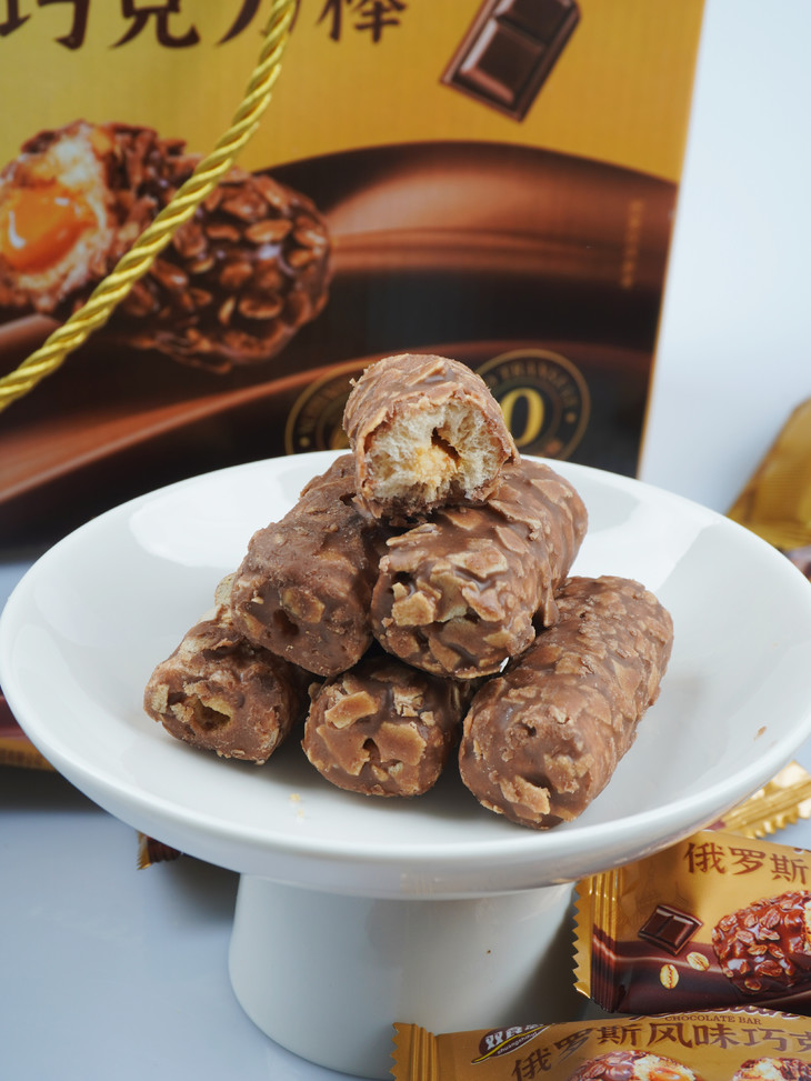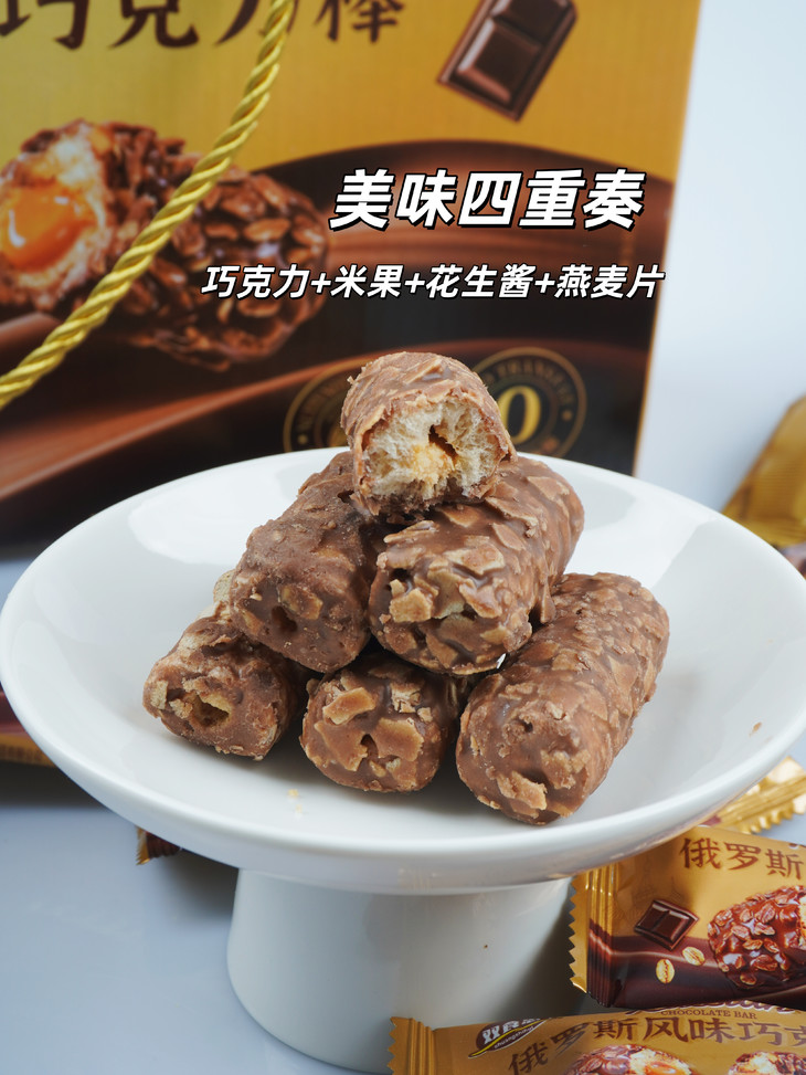 【俄罗斯风味巧克力棒】🔥巧克力➕花生酱➕脆米果➕麦片🍫 ✅浓郁顺滑的巧克力+酥脆的米果+外层洒满麦片+内层花生酱夹心