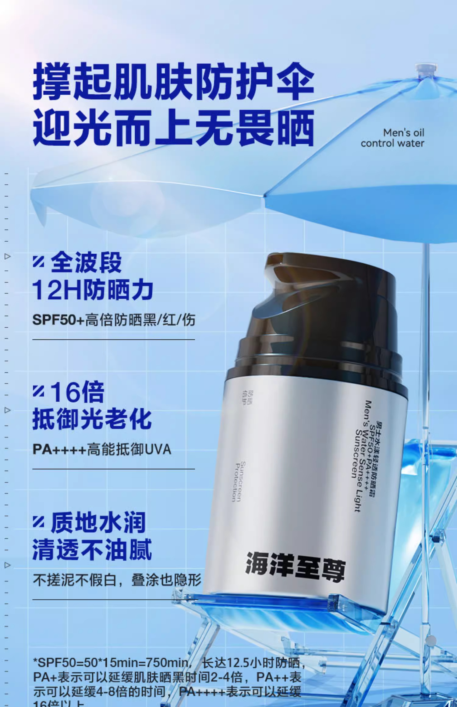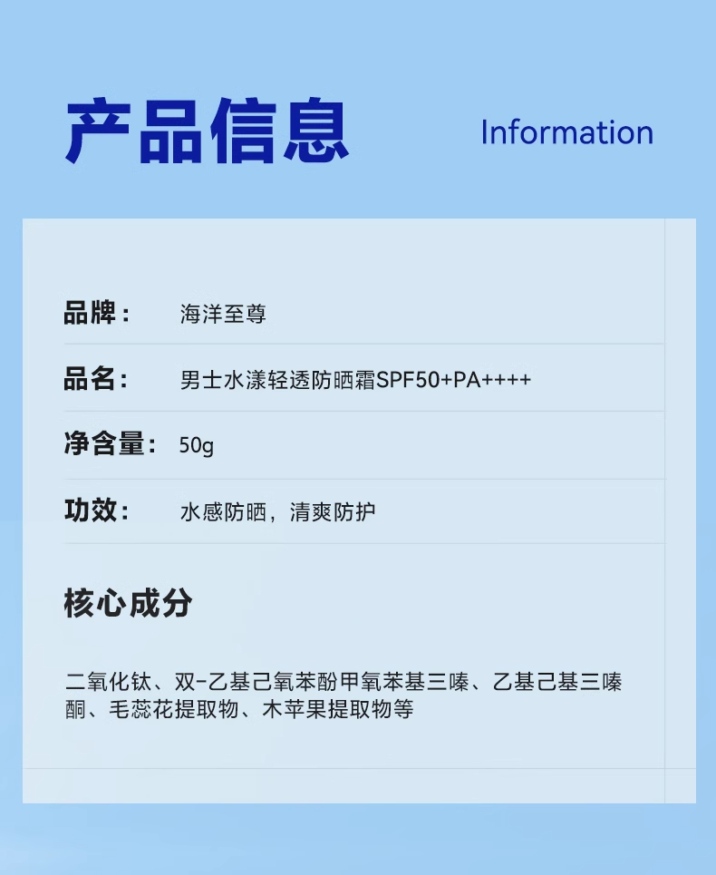 商城【理容香氛】海洋至尊男士水漾轻透防晒霜SPF50+PA++++