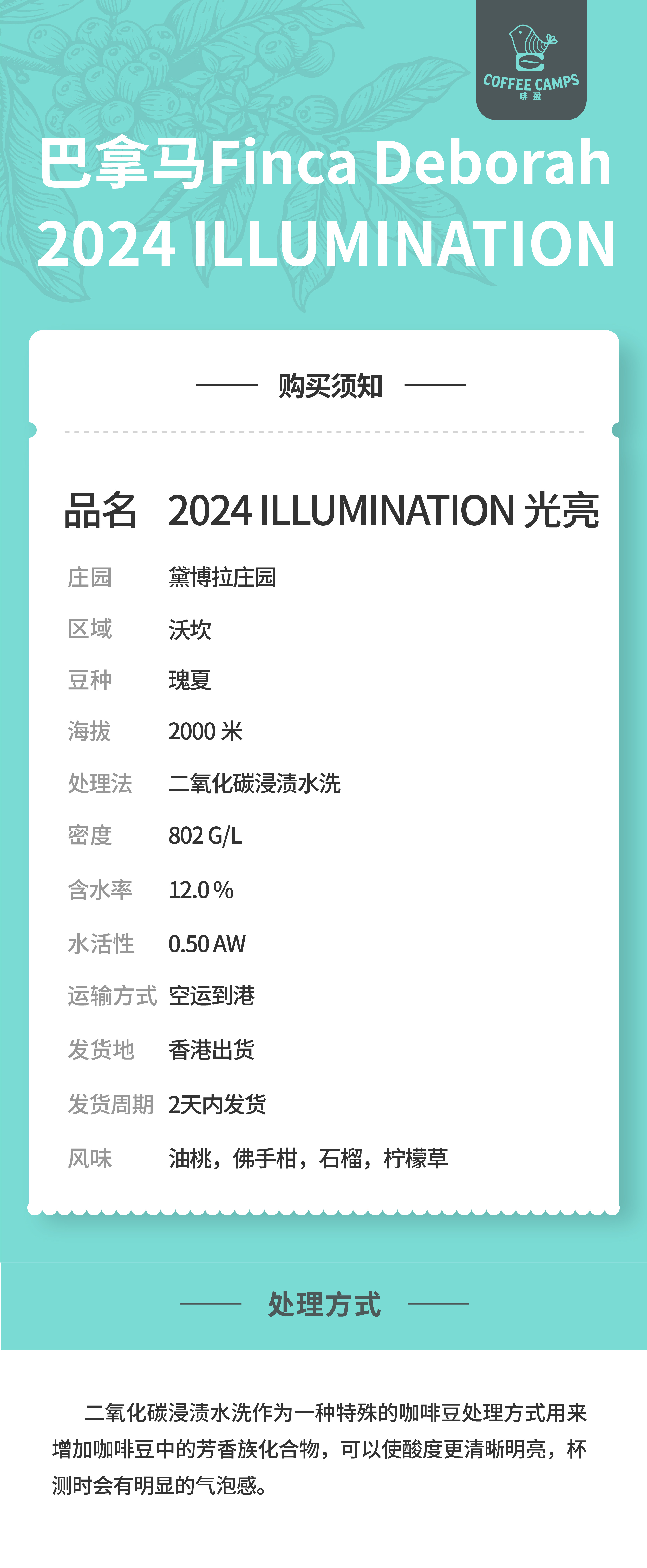 24产季 巴拿马 黛博拉 Finca Deborah 光亮 ILLUMINATION 瑰夏 二氧化碳浸渍水洗(生豆)空运批次