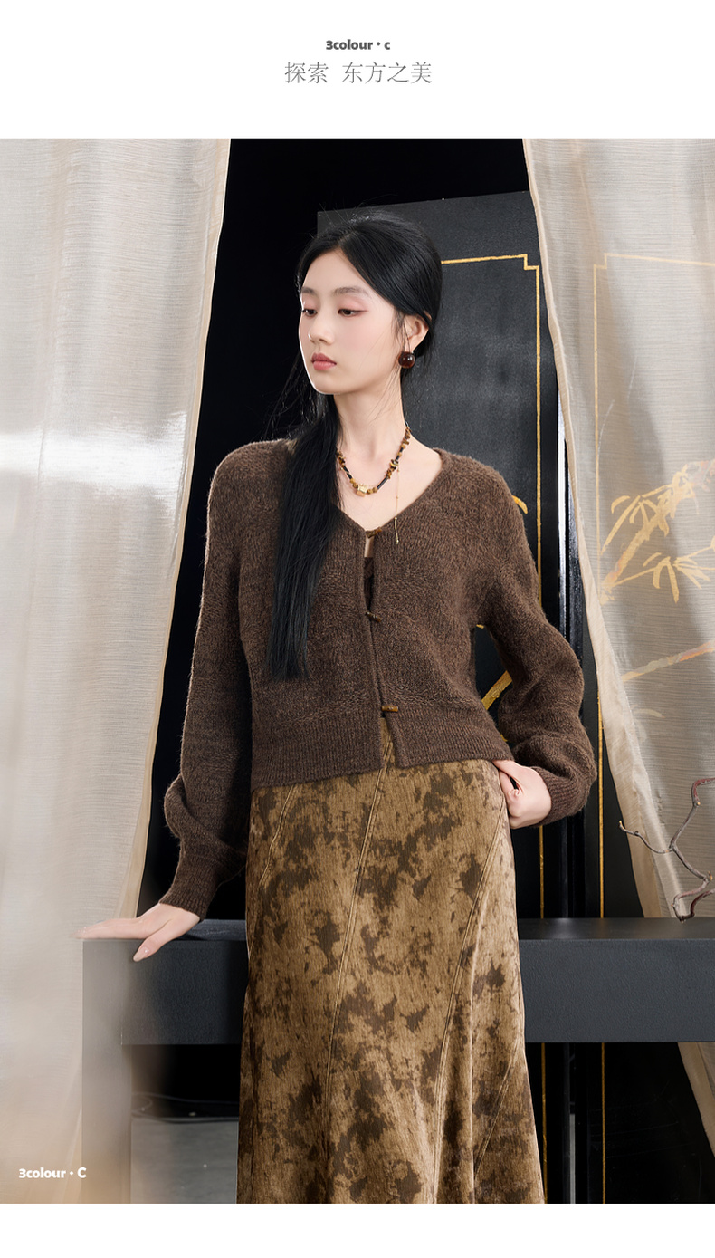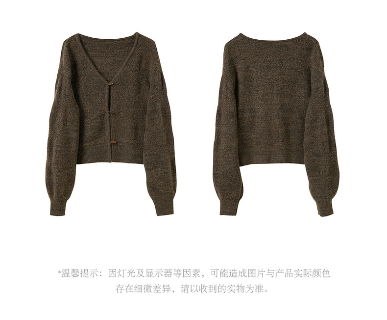 三彩【倚竹听暖】2025秋季新款针织衫V领毛衫外套短款中式C