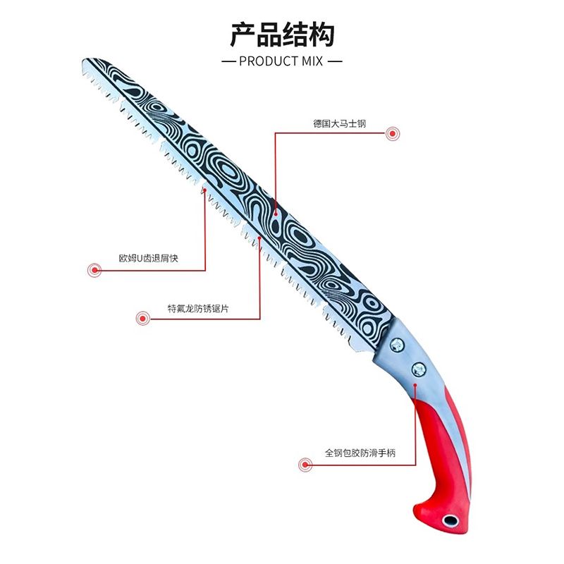 德国大马士革锯,特氟龙防锈 加长尺寸更适合大型粗木,拉动省力,抗磨灵活切割,适用于DIY制作/户外/园林生产等。