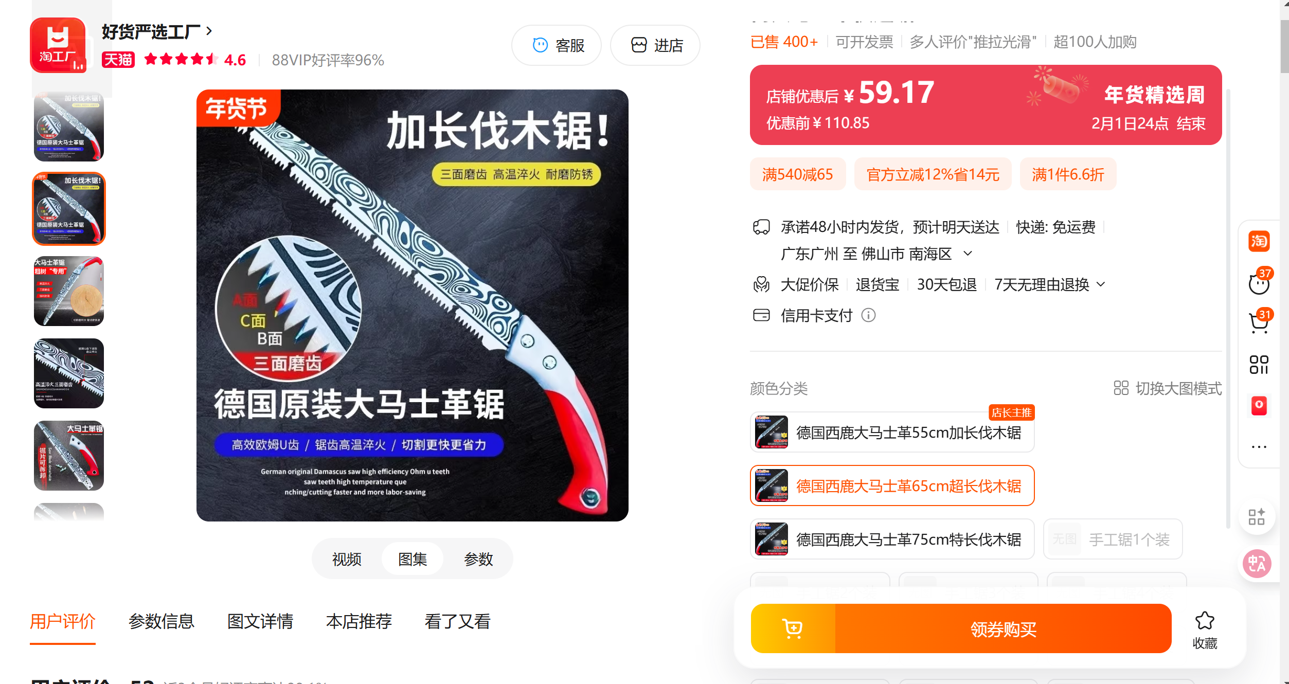 【仅限自提】德国大马士革快速锯 原装精工加长伐木锯 长65cm 园林特快木工锯特大号砍树锯树 刀片可拆卸