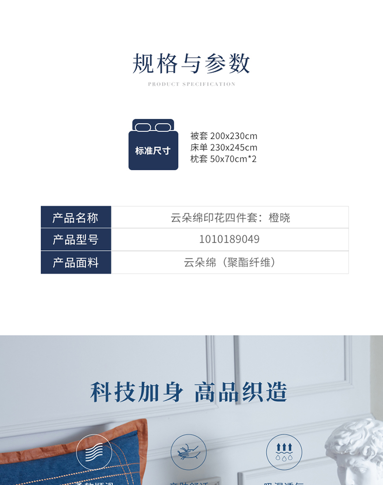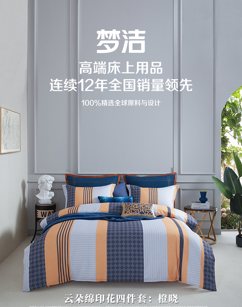 梦洁云朵绵印花四件套:橙晓 200*230cm—rxs