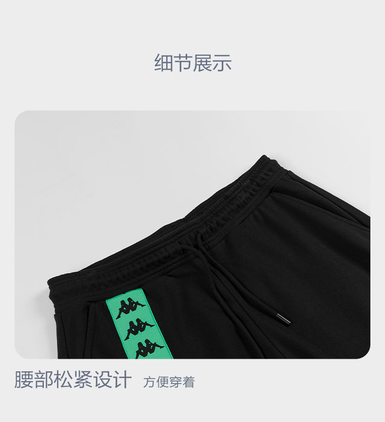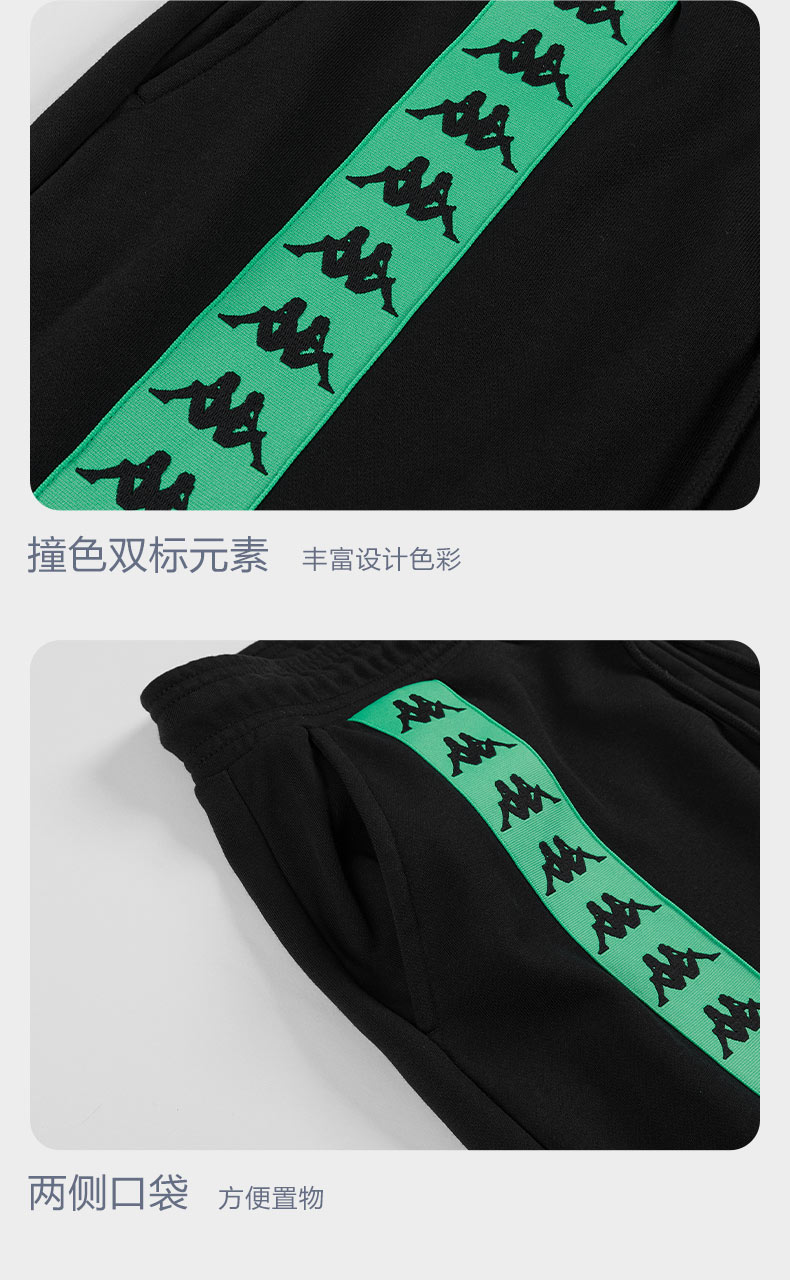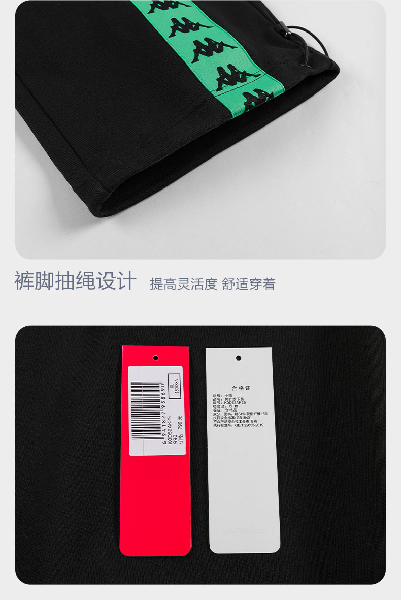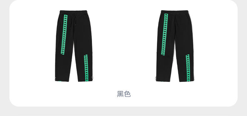 Kappa卡帕复古运动休闲裤2023新款男黑色直筒长裤抽绳小脚卫裤