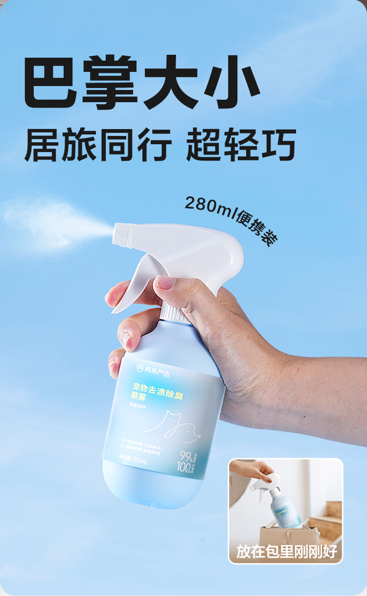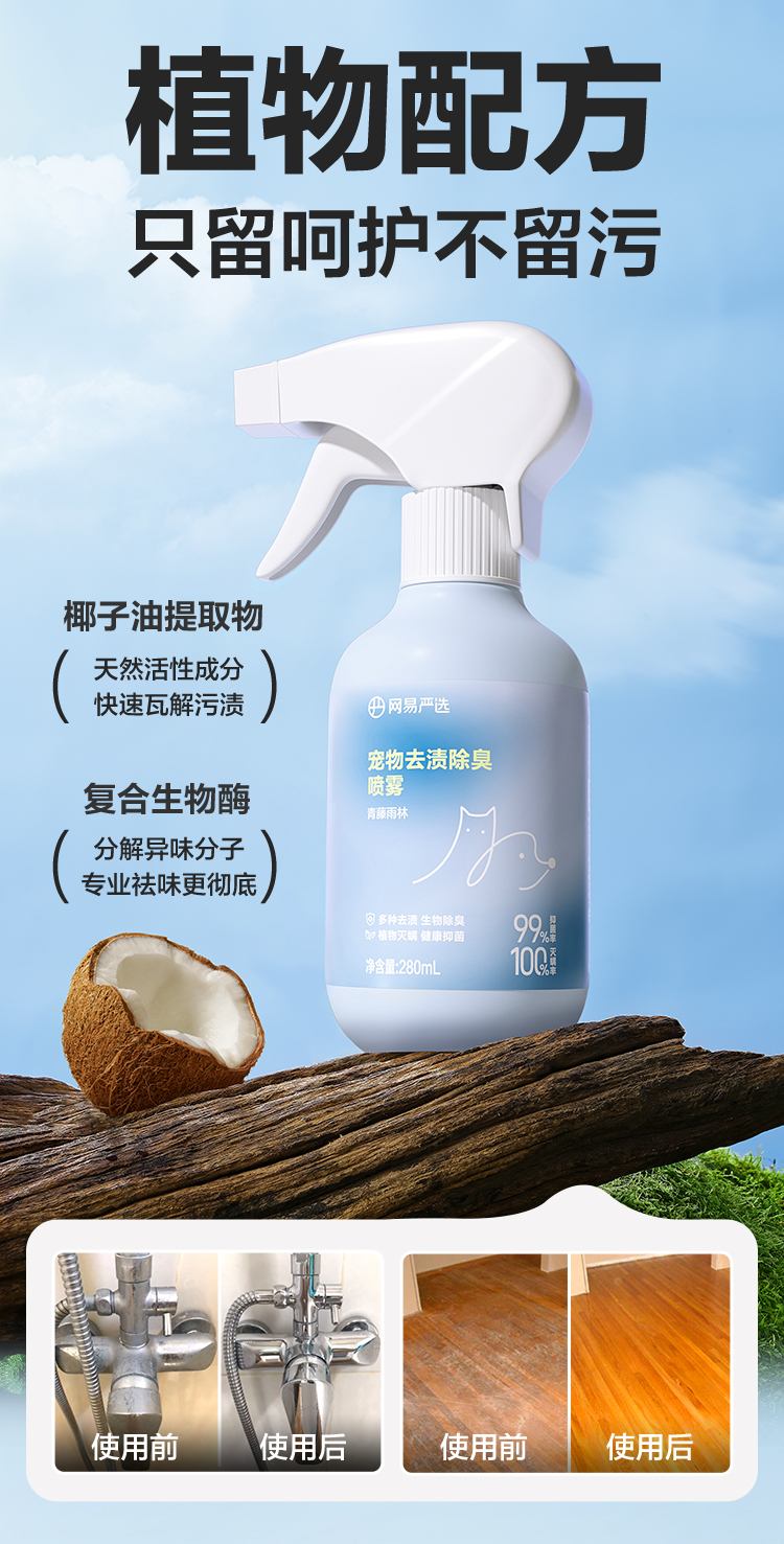 宠物去渍除臭喷雾280ml,天然植物配方