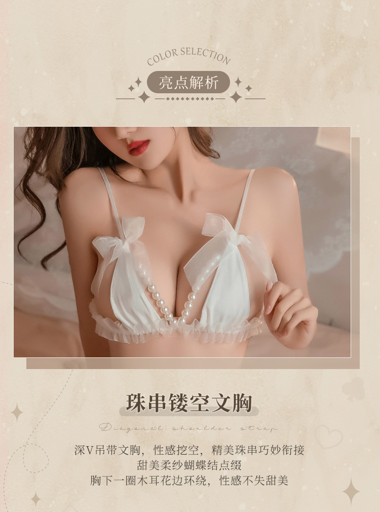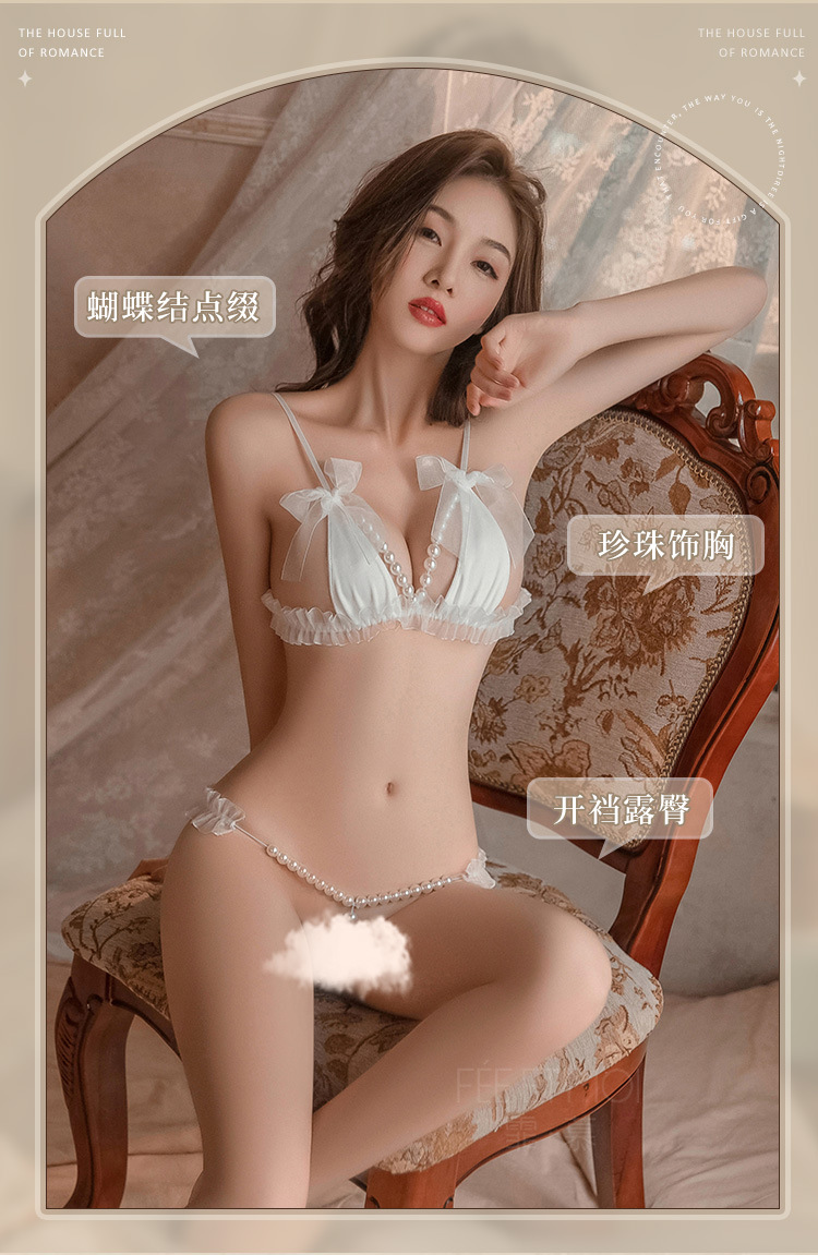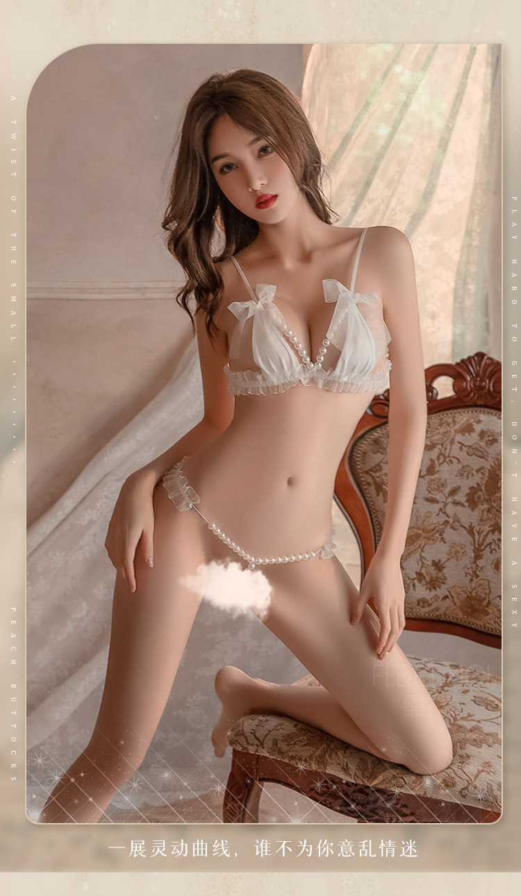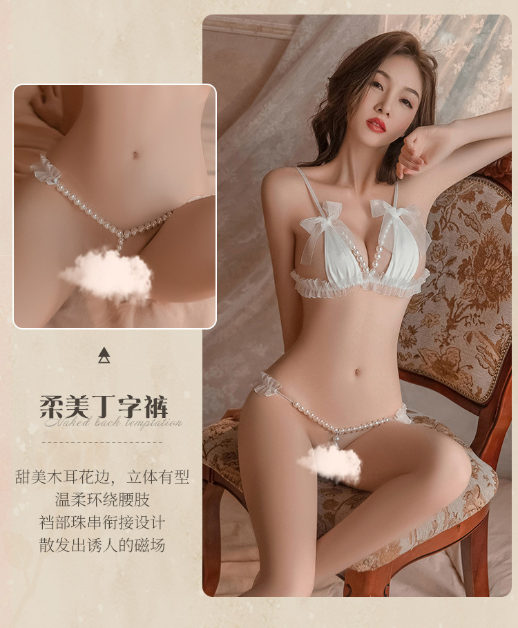【霏慕】 花边透纱珍珠串饰三点式6536情趣内衣成人用品性爱性感