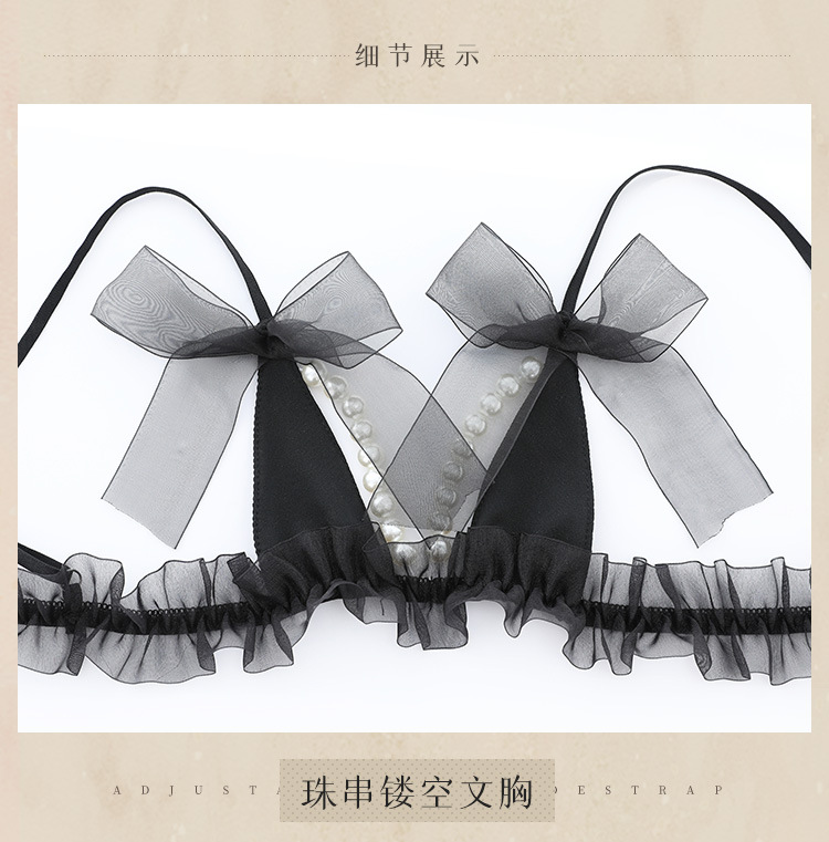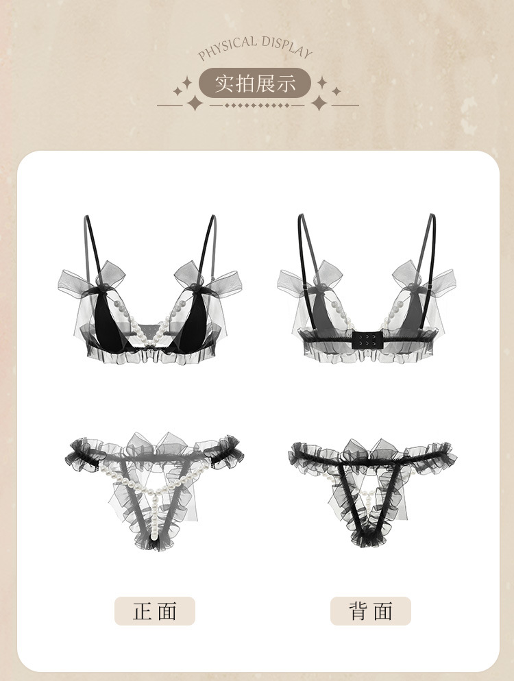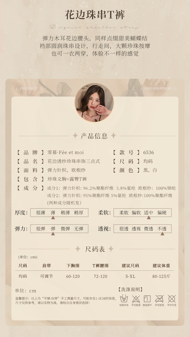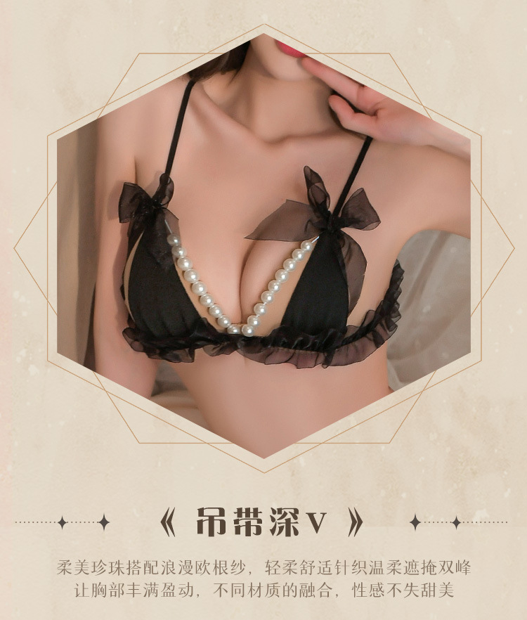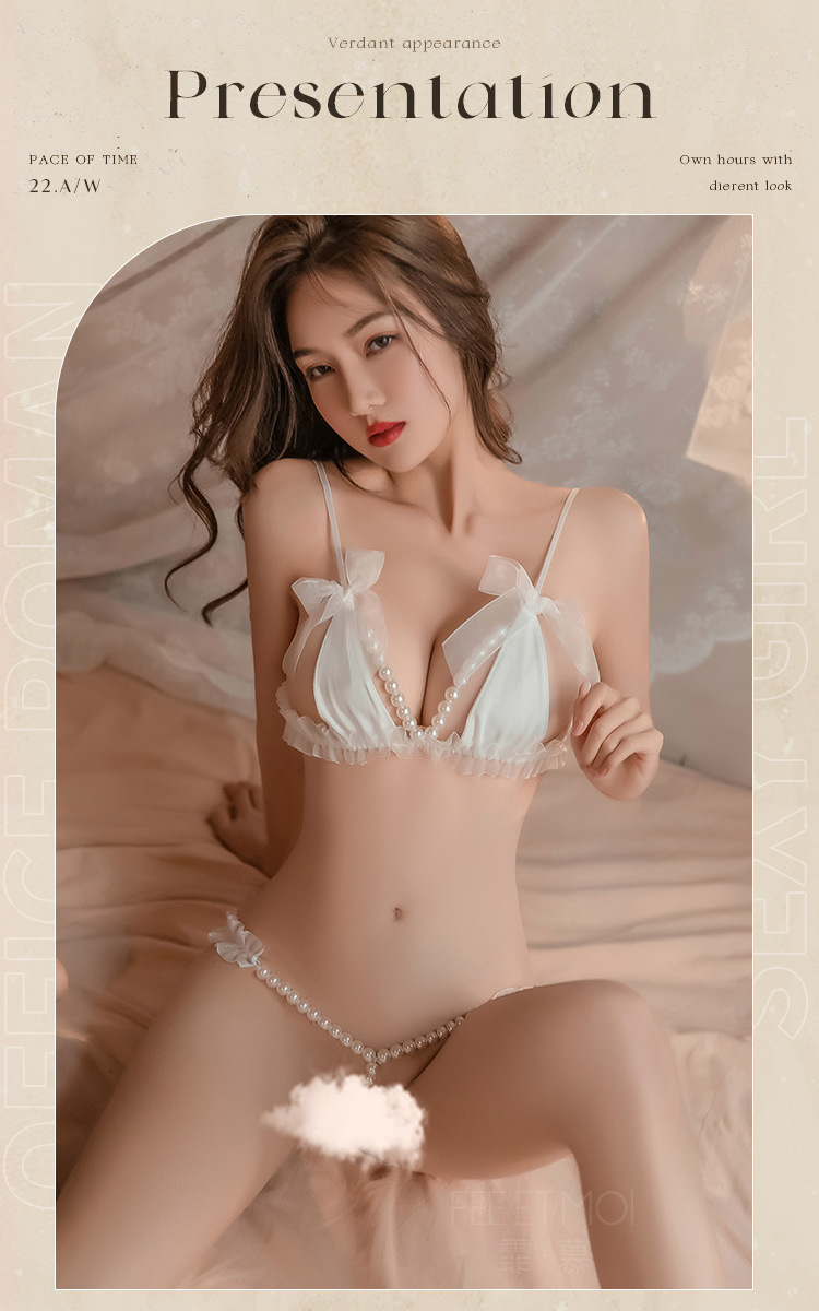 【霏慕】 花边透纱珍珠串饰三点式6536情趣内衣成人用品性爱性感