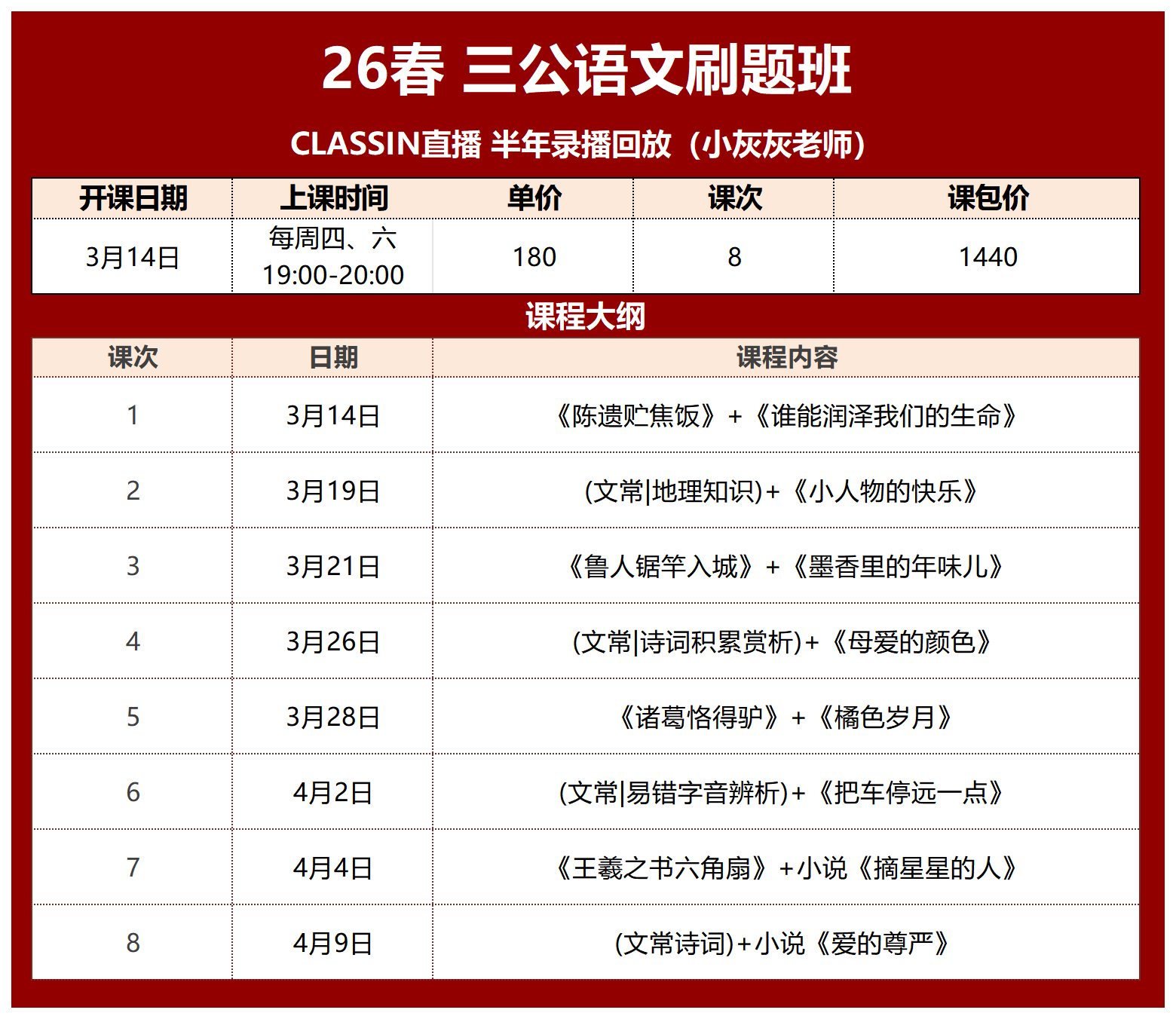 小灰灰老师:复旦大学毕业,多次获得国家奖学金,机构明星教师,常年教学1-9年级的古诗文、文言文,经验十分丰富,近10年教龄,辅导学生超万人,教学中注重涵养的积淀、语感的陶铸、体系的构塑和方法的引导,在教学中让孩子充分领略文学的优美。