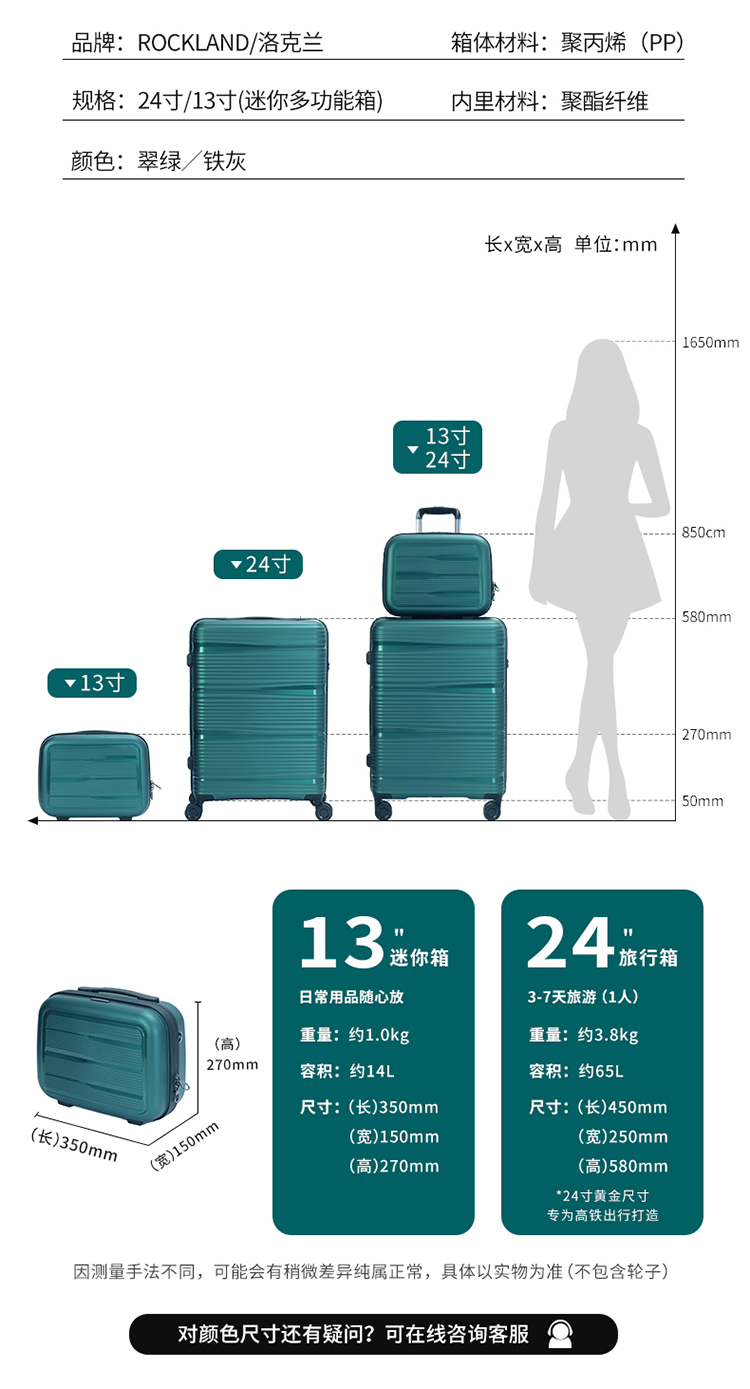 洛克兰智慧波浪系列子母套箱CRX1801 13+24寸 翠绿/铁灰—rxs