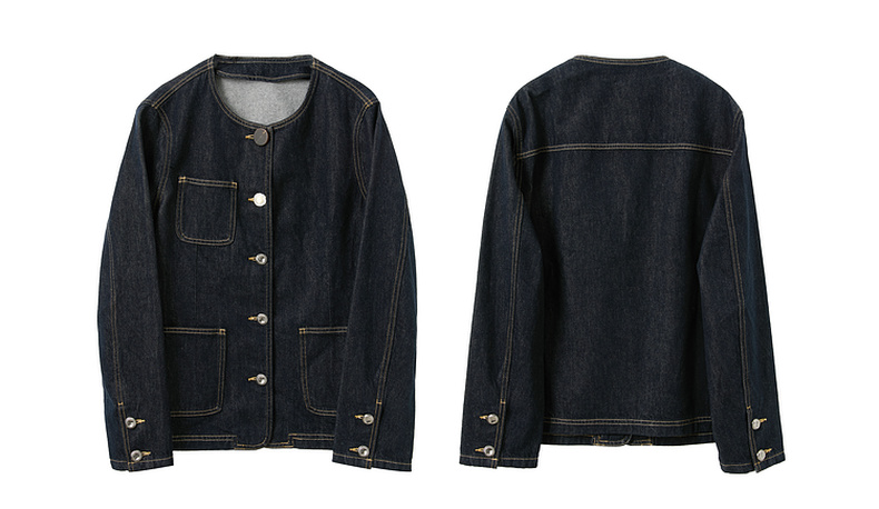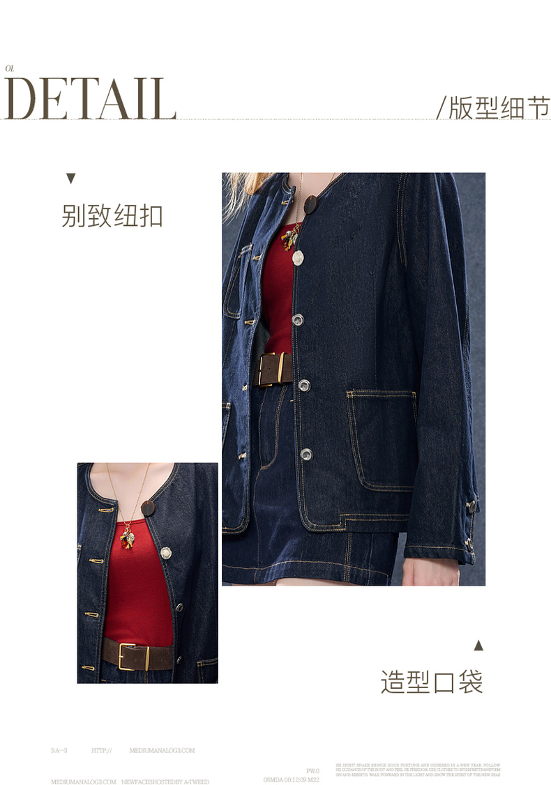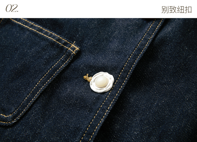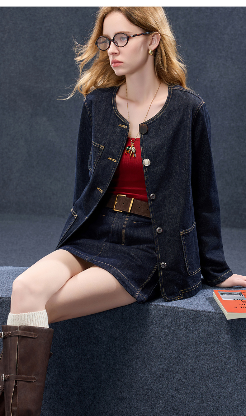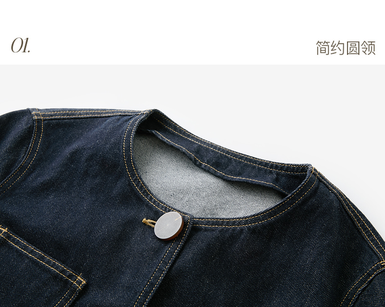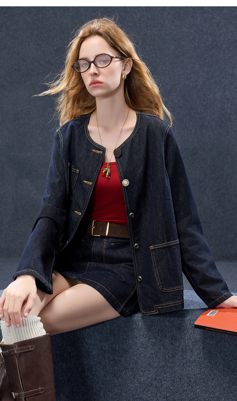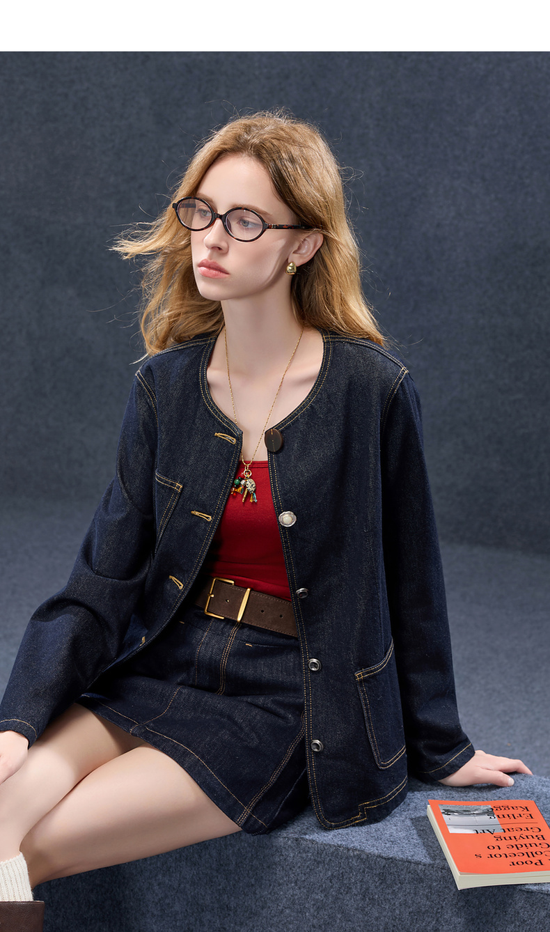 【防褪色牛仔】三彩2025秋季新款纯棉外套圆领宽松开衫复古简约M