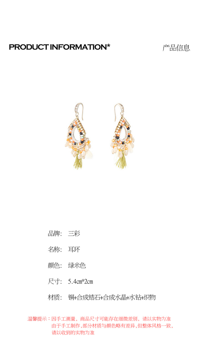 三彩2026新款手工流苏耳环波西米亚串珠水钻异域度假风耳钩氛围感