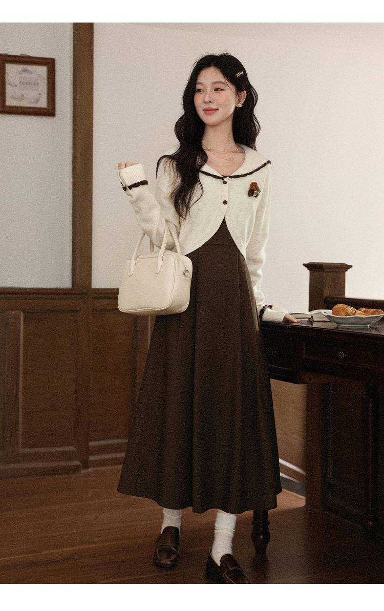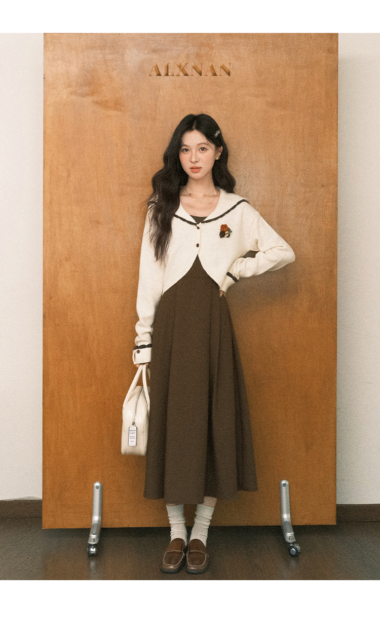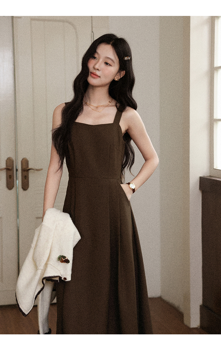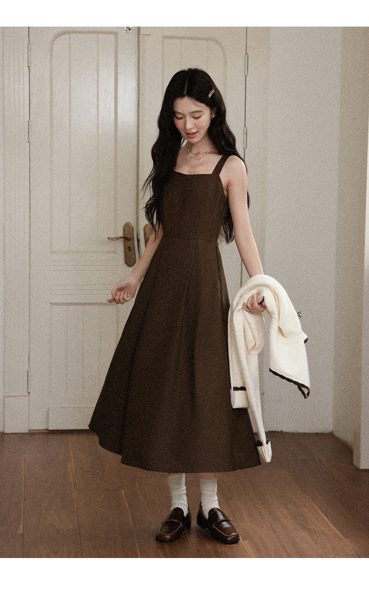 鹿向南「松香书页」咖色吊带裙法式连衣裙女秋季新款长款收腰裙子