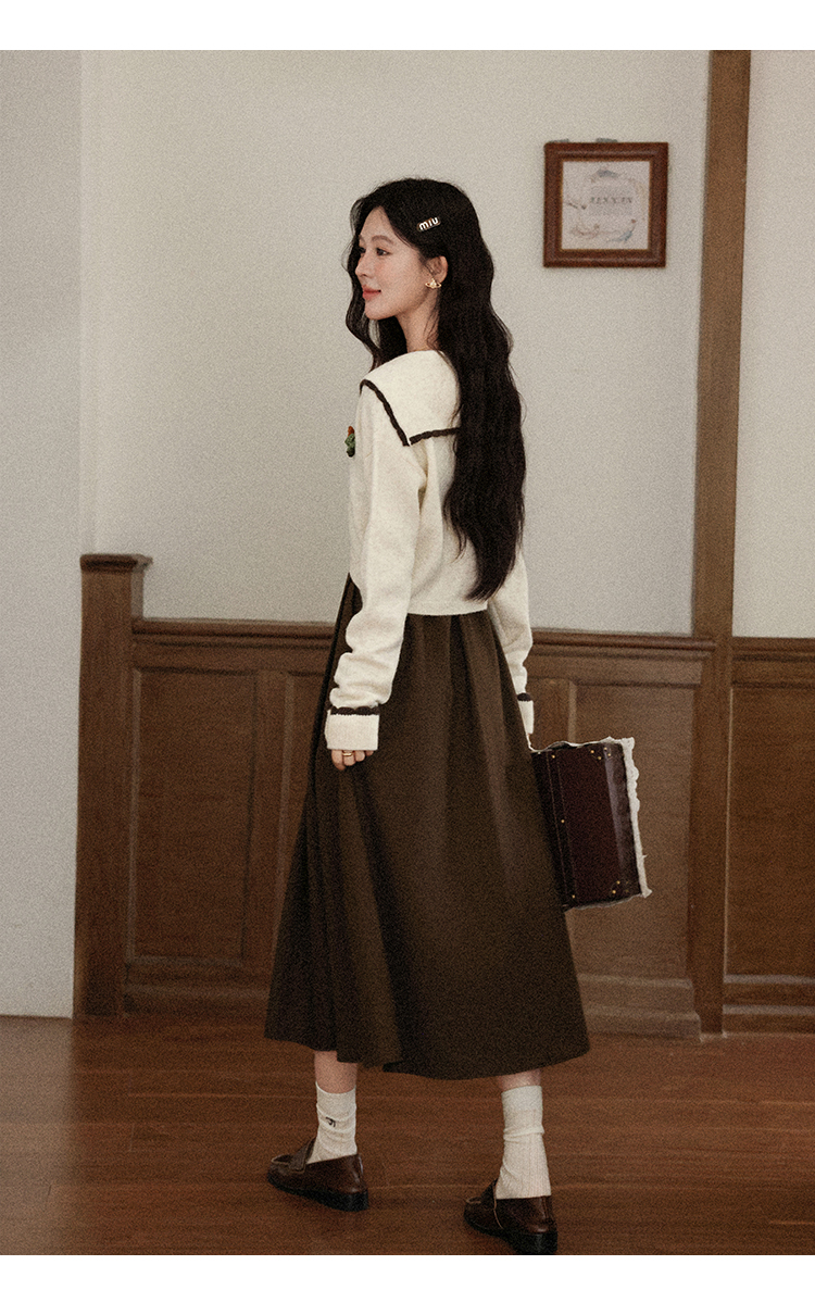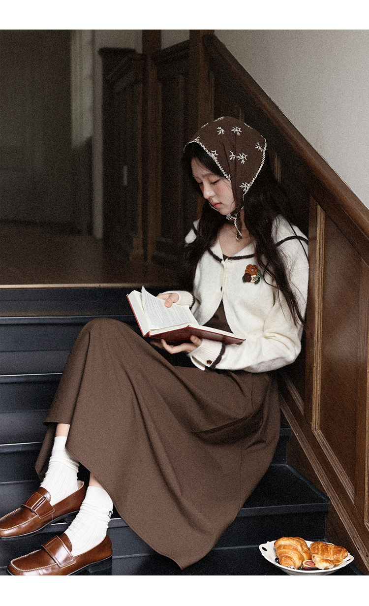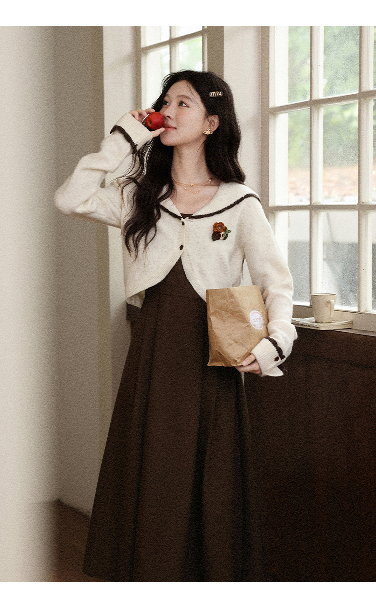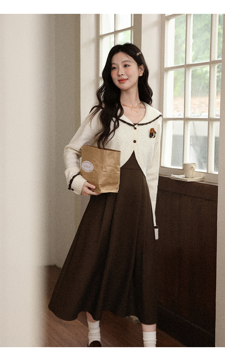 鹿向南「松香书页」咖色吊带裙法式连衣裙女秋季新款长款收腰裙子