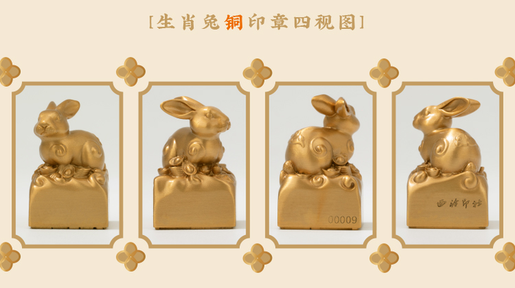 内含西泠纯铜兔牛印章一枚和《癸卯年》特种邮票小版票套(2张)