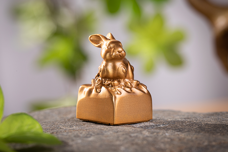 印章上有瑞兔,脚踩元宝,祥云披身,仰天凝视远方,看到都被感染奋发的心情。
