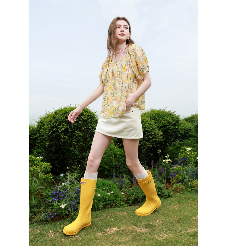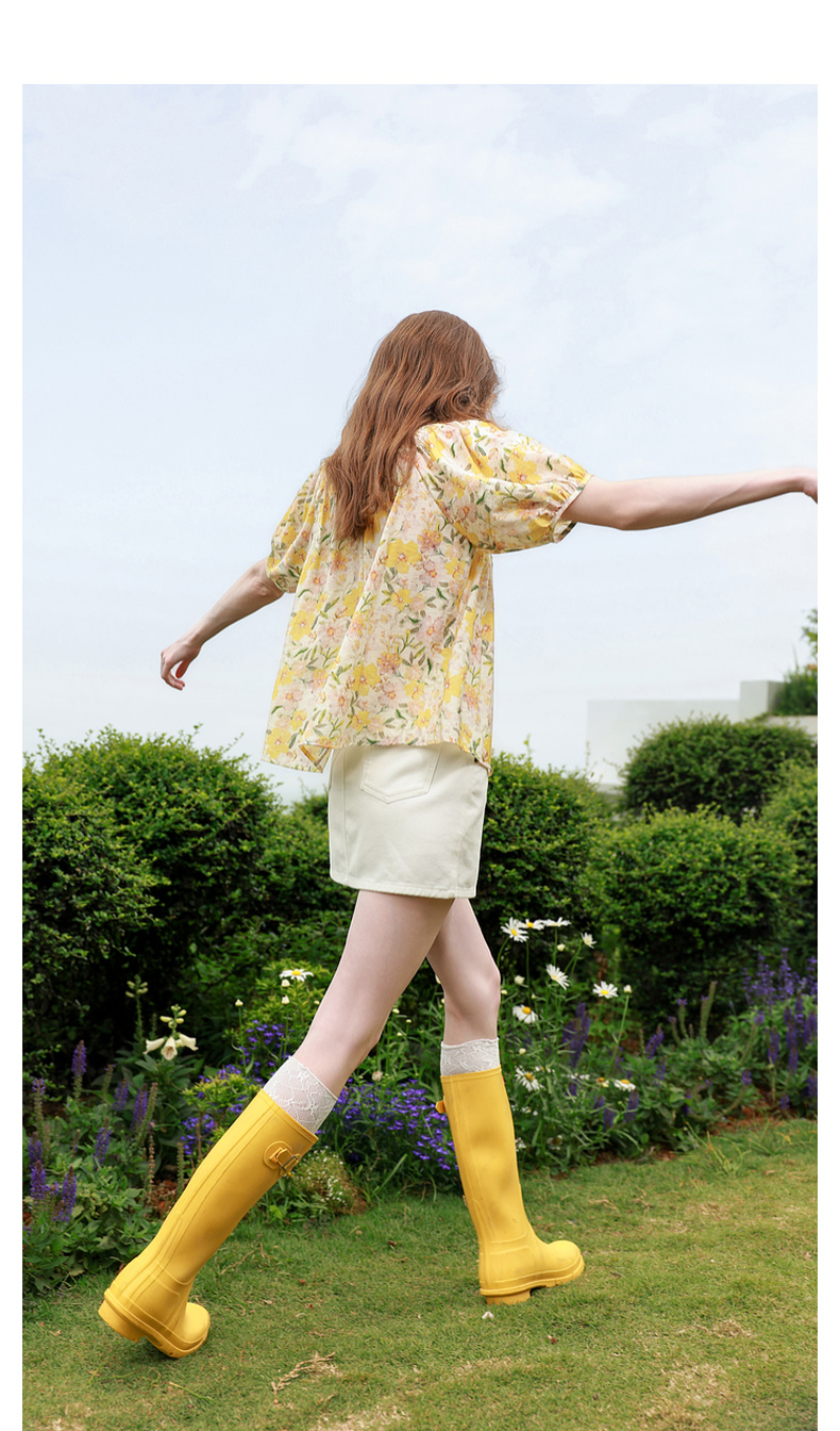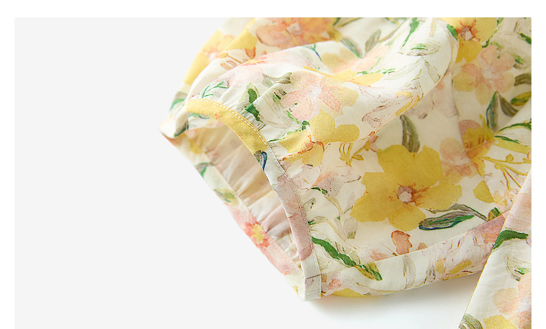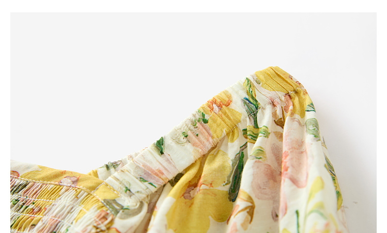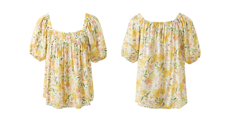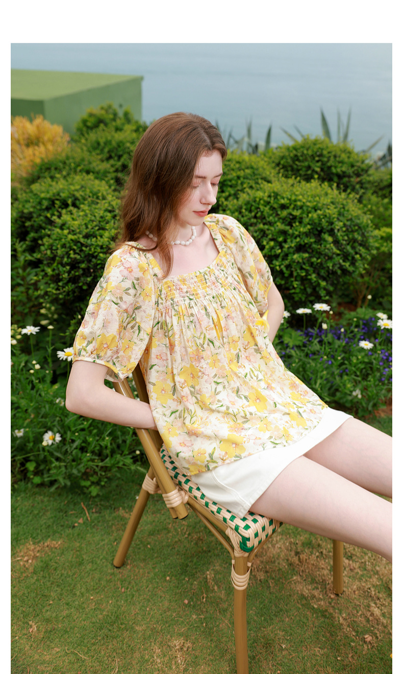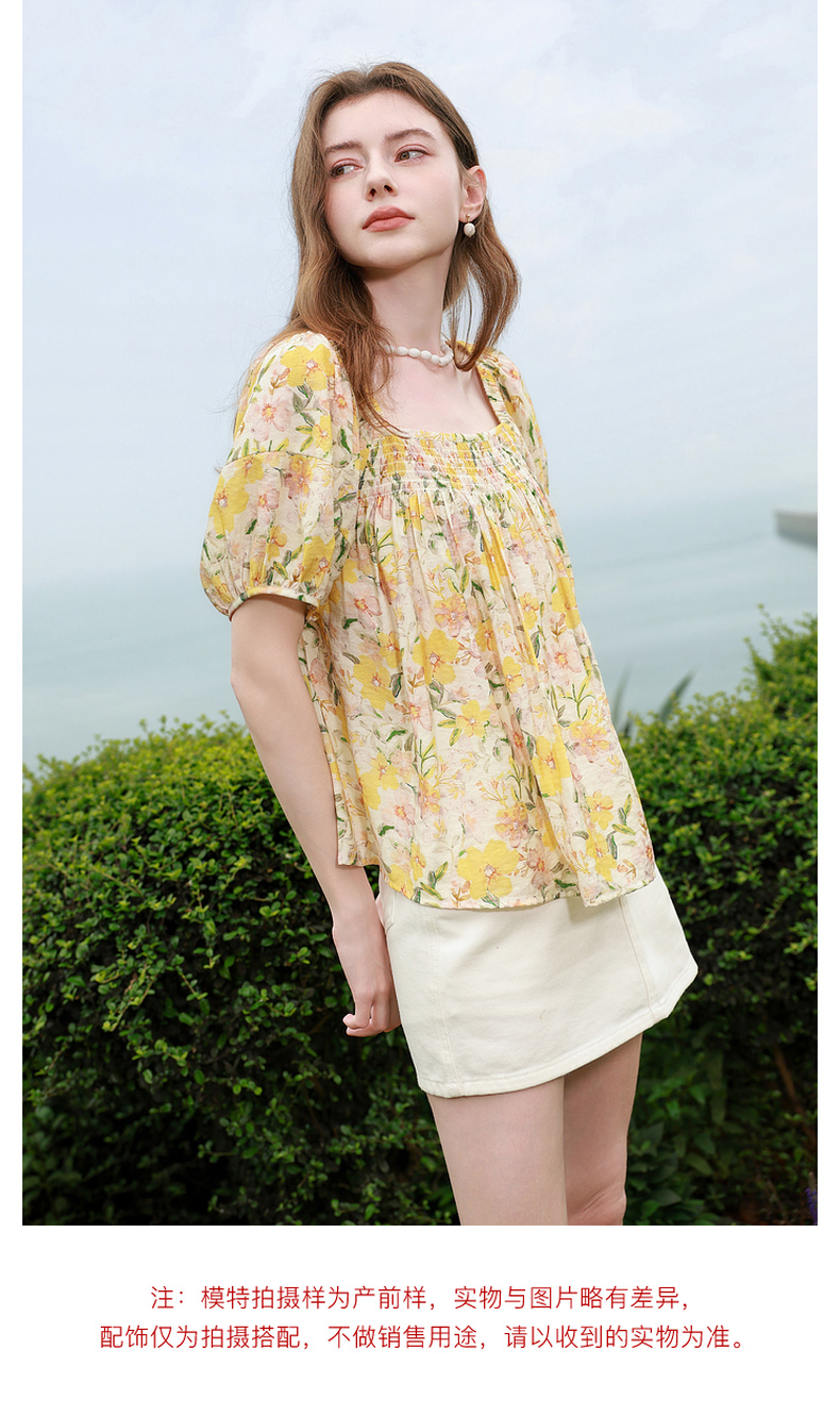 三彩2025夏季新款碎花小衫方领打揽上衣泡泡袖宽松小清新M