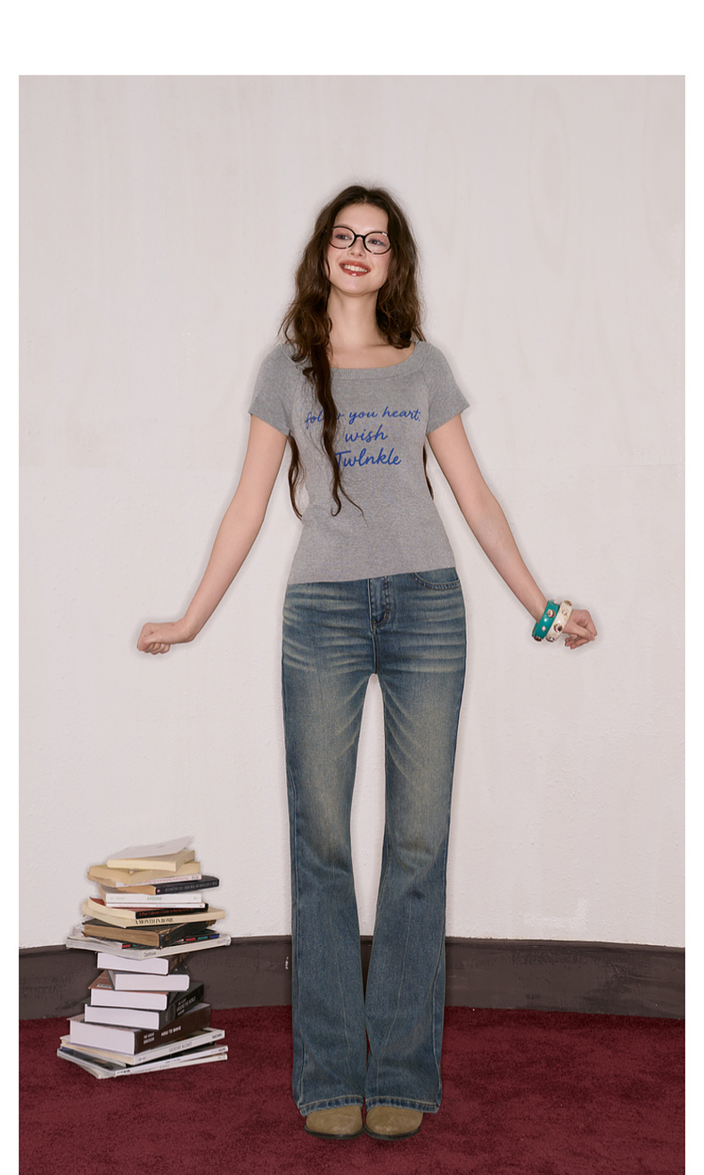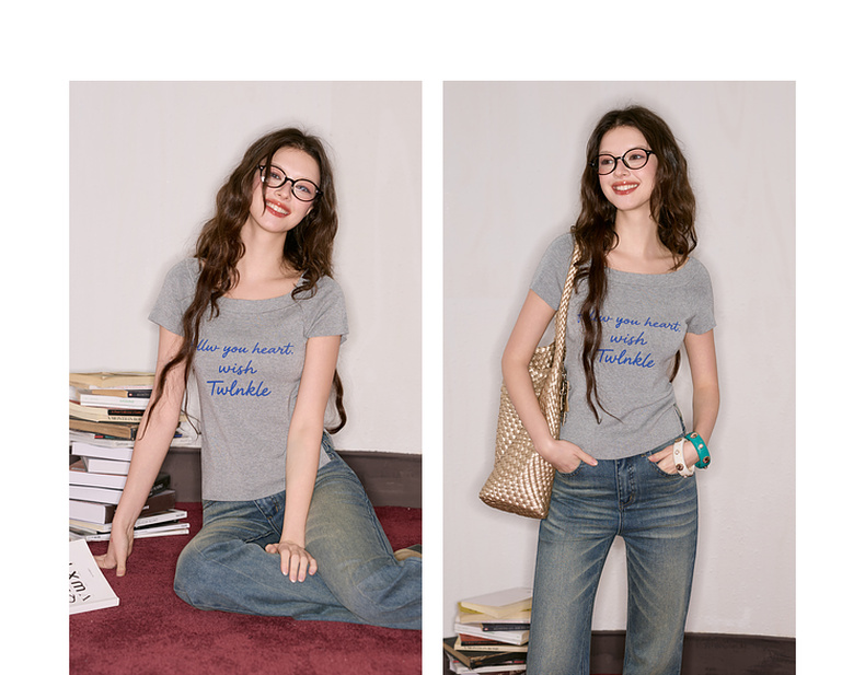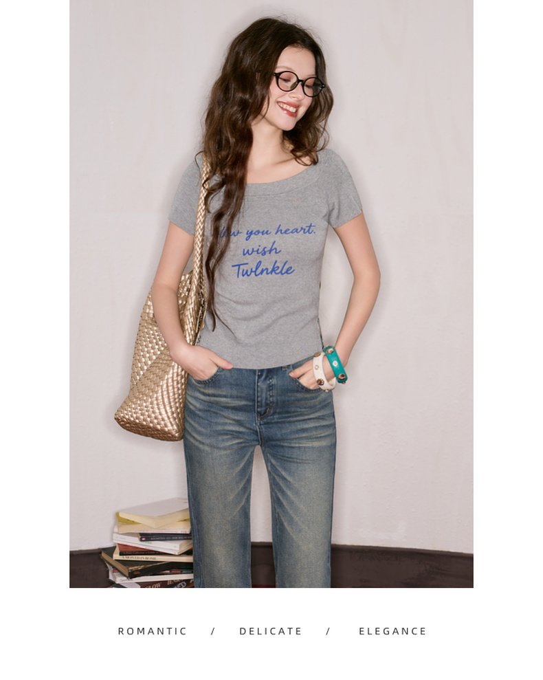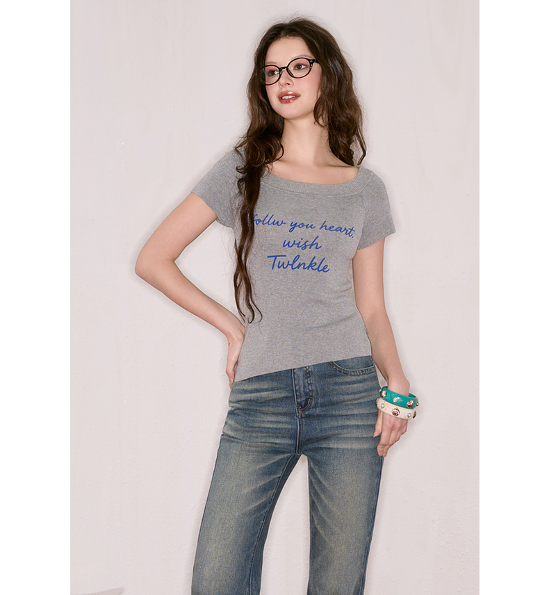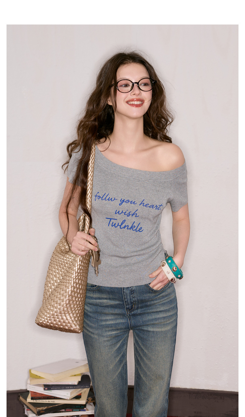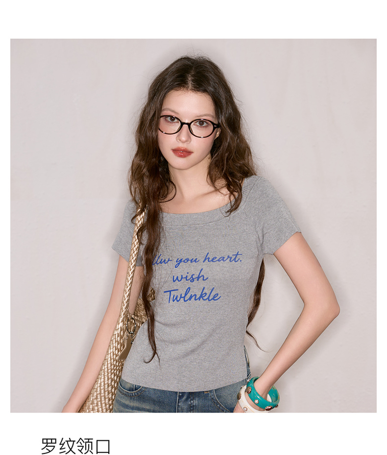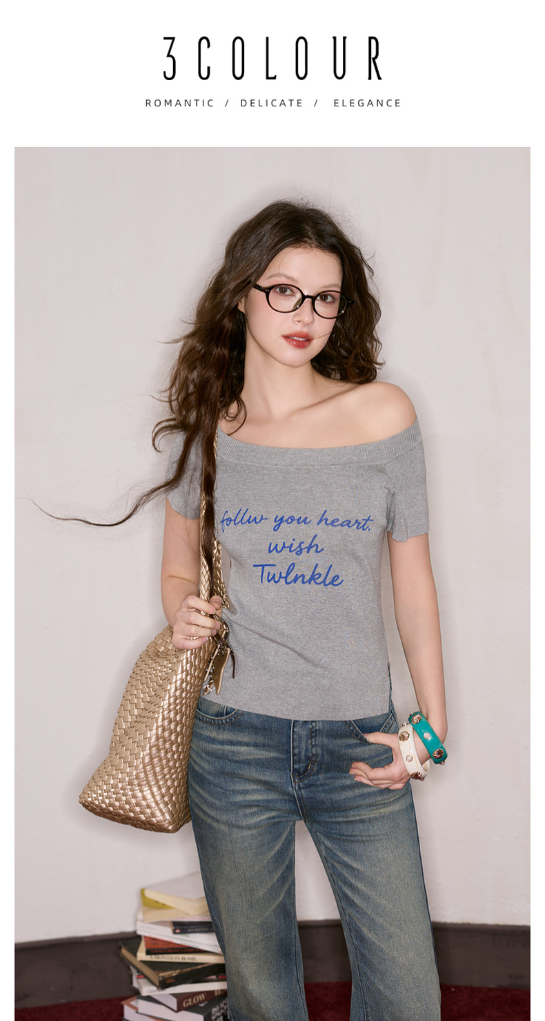 【莱赛尔】三彩独醒2025秋季新款字母针织衫短袖毛衫修身短款F