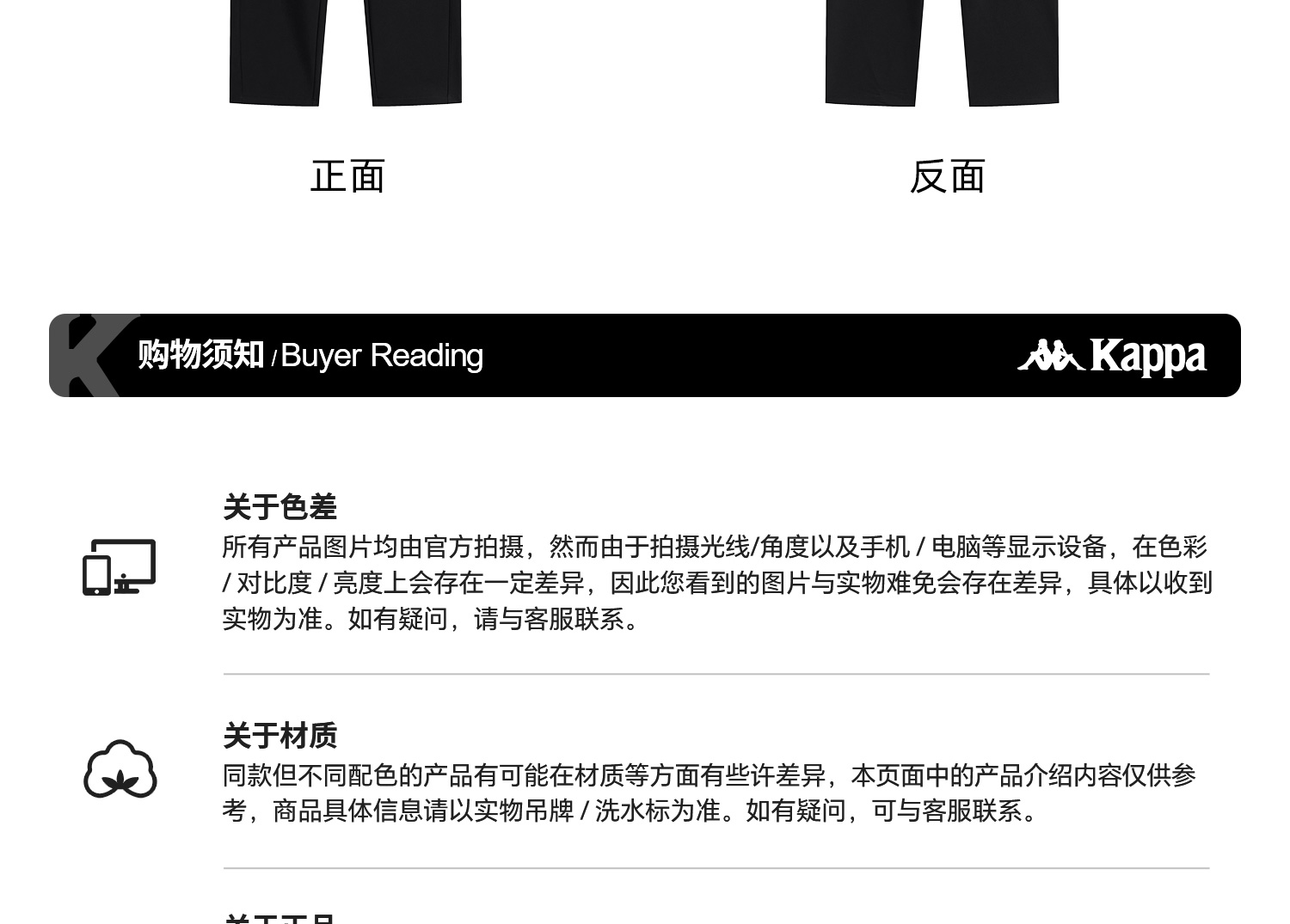 Kappa 运动长裤男士冬季加绒保暖休闲收口裤直筒长裤子K0G12AY42
