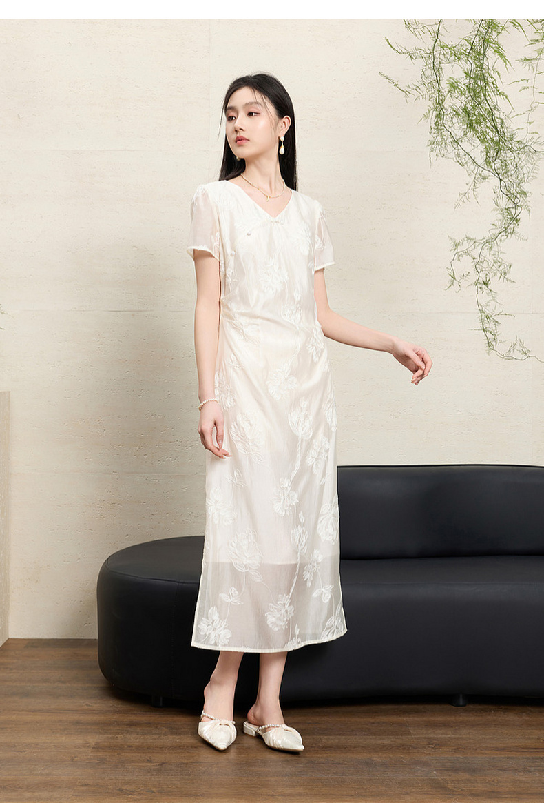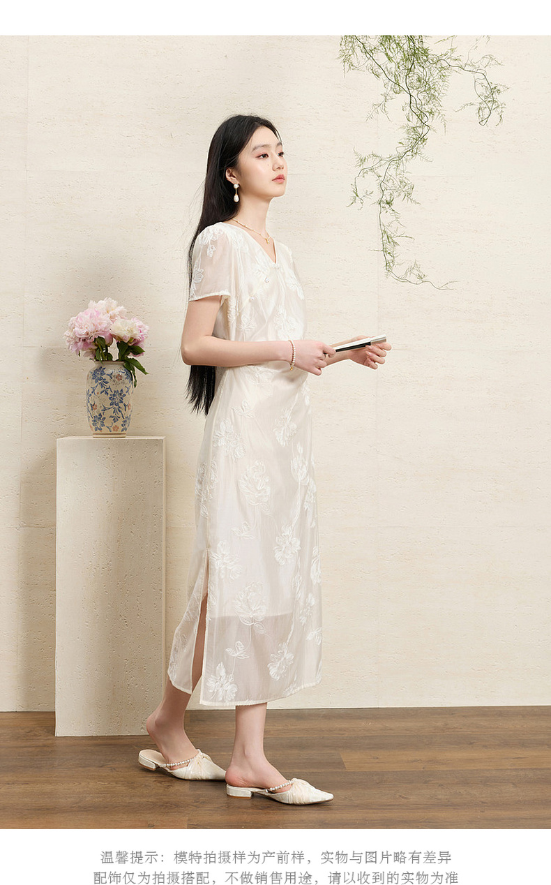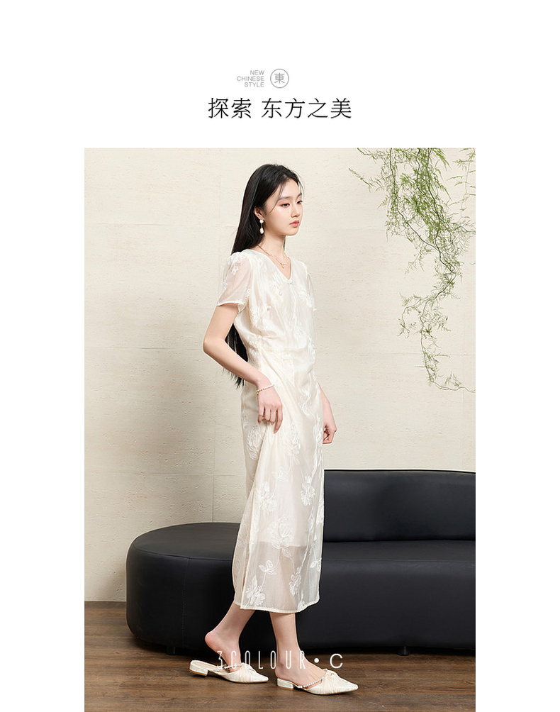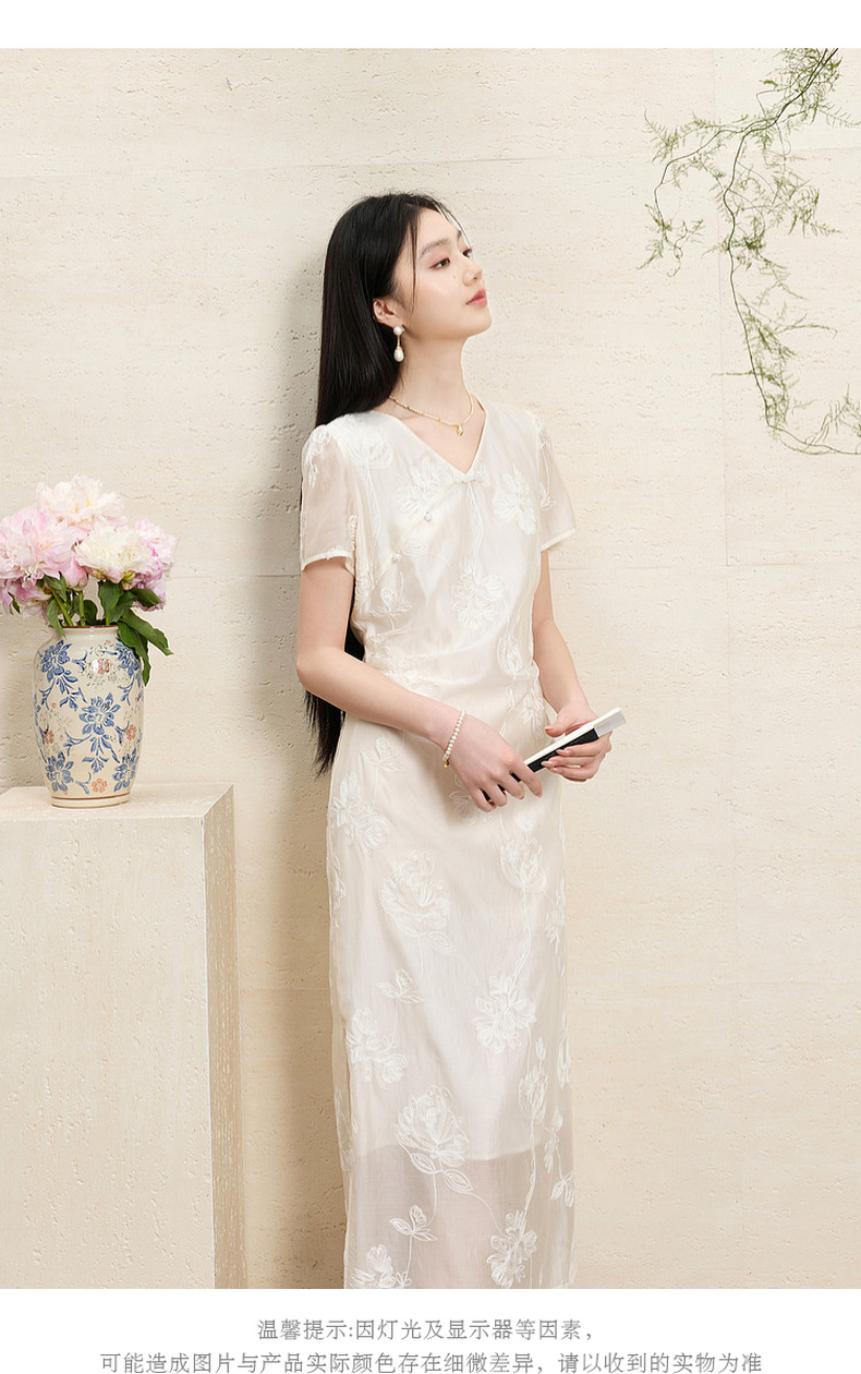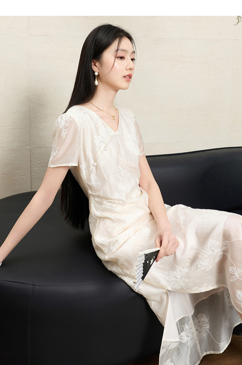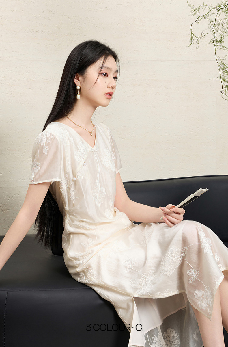 【月明清辉】三彩2026夏季新款新中式连衣裙绣花A字裙长裙C