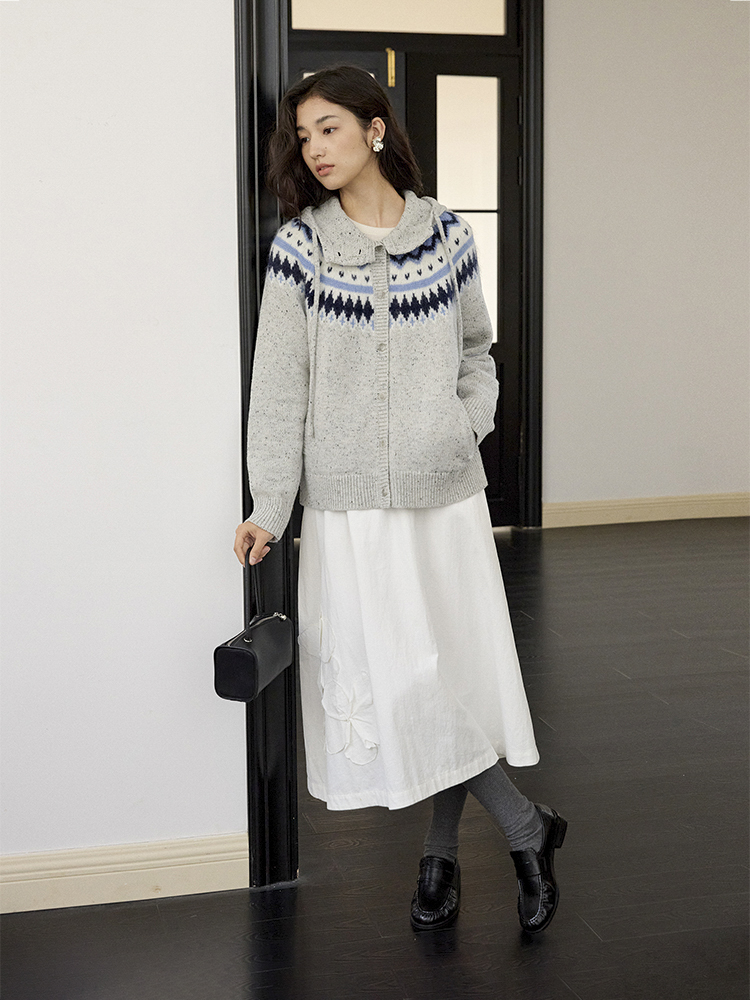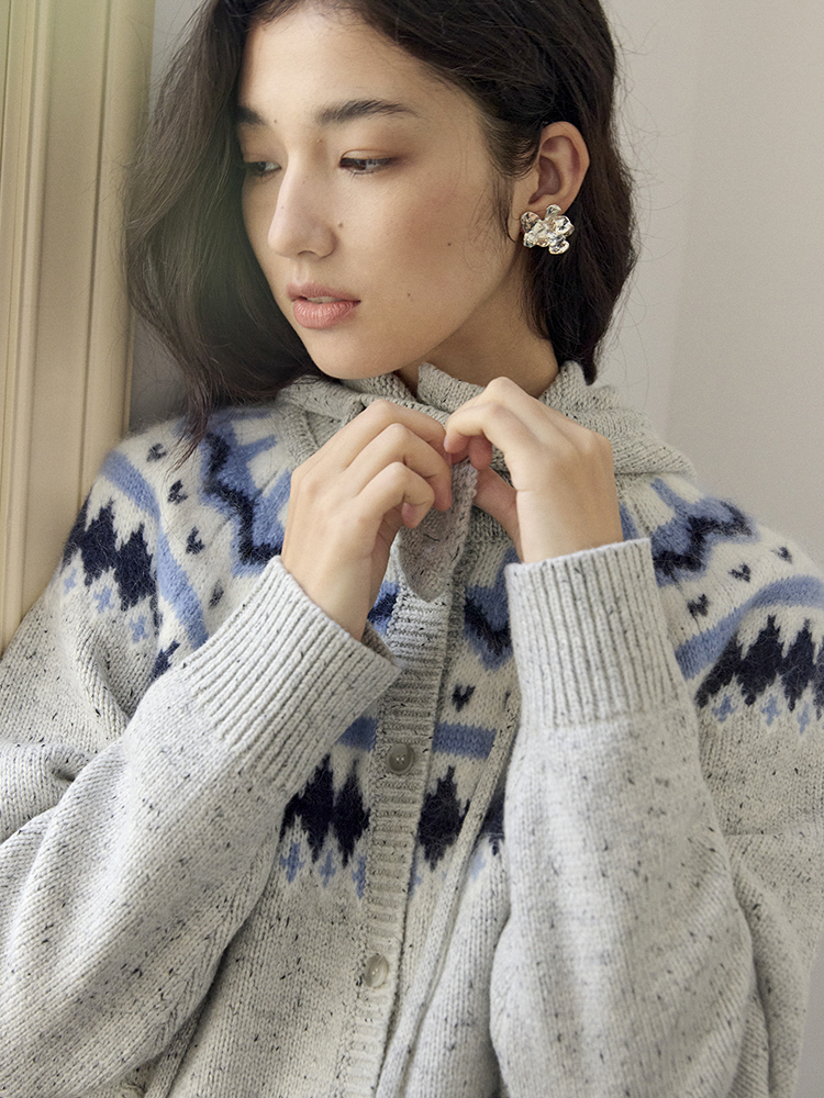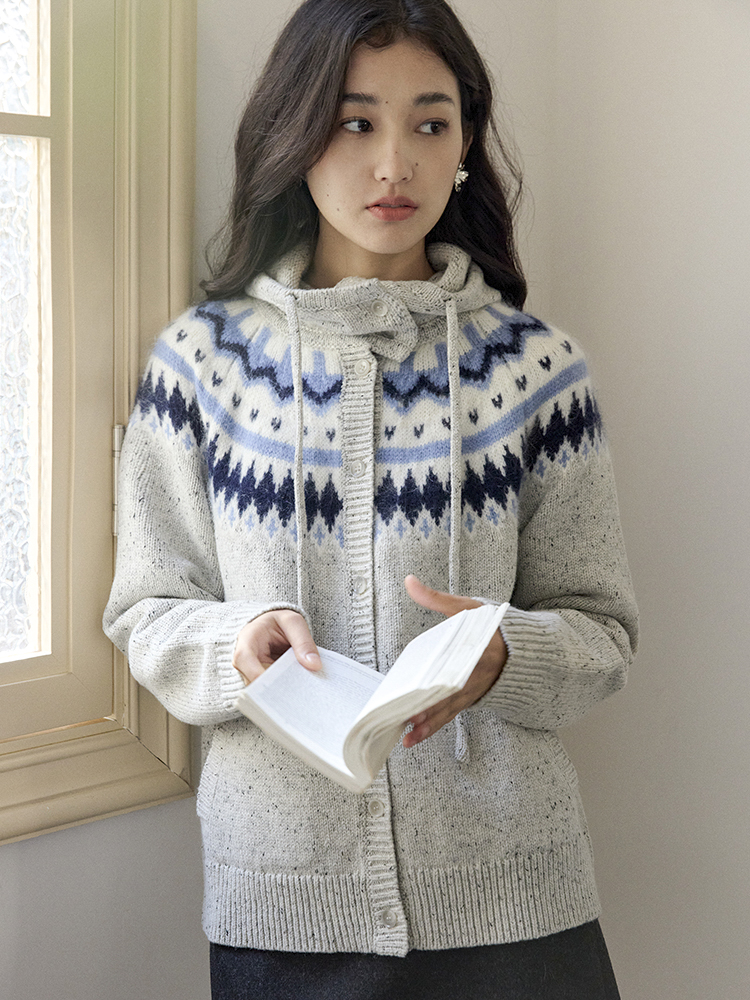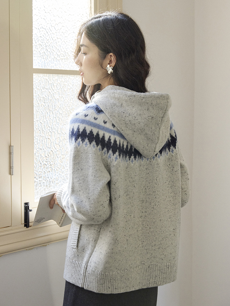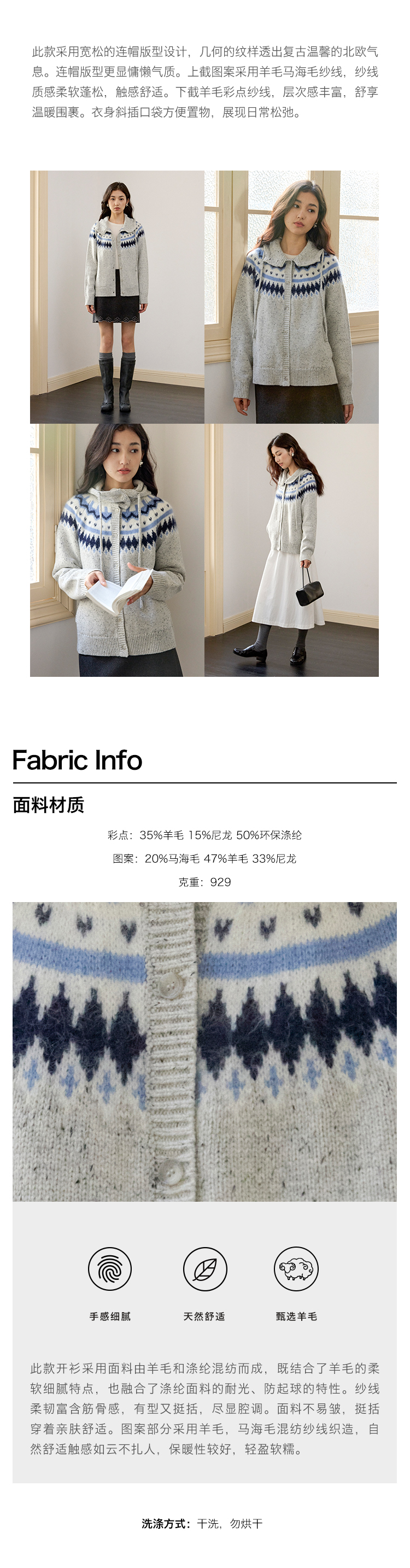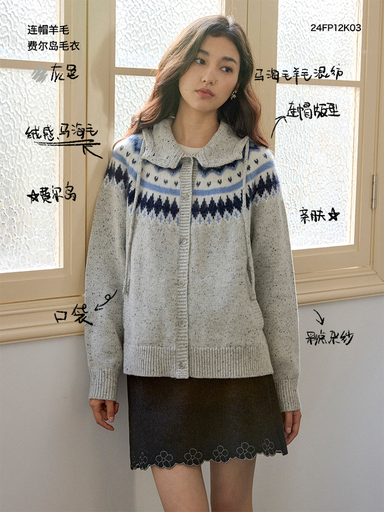 ForPoem 现货 24/FW原创设计北欧风连帽羊毛马海毛费尔岛毛衣开衫