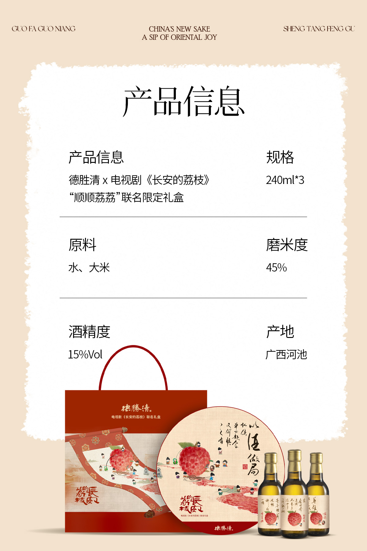 【德胜清】德胜清x长安的荔枝 “顺顺荔荔”联名限定礼盒!国产清酒纯米大吟酿240ml