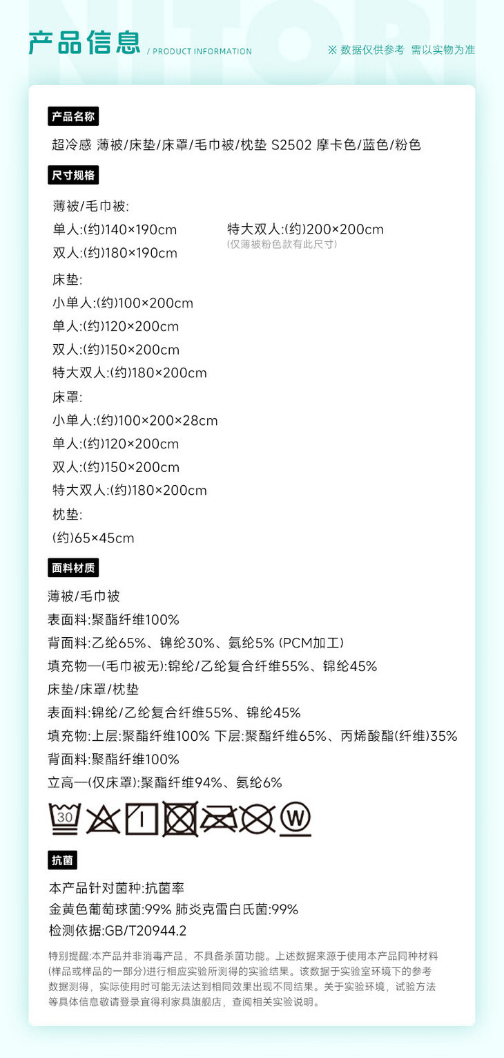 强冷感S2502 粉色床品系列 薄被/床垫/枕垫 单人/双人/特大双人